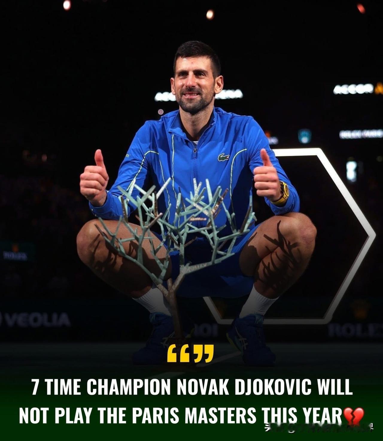 令人心碎的缺席,诺瓦克·德约科维奇将缺席巴黎大师赛! 球迷们将遗憾地错过诺瓦克·德约科维奇在巴黎大师赛上的表现,尽管他在辉煌的职业生涯中曾七次征服这项赛事。 本赛季,这位塞尔维亚人将只夺得了雅典ATP250赛冠军,并可能参加ATP年终总决赛,这将在网球最具标志性的舞台之一留下一个空缺,这对球迷和这项运动来说都是一个艰难的时刻。