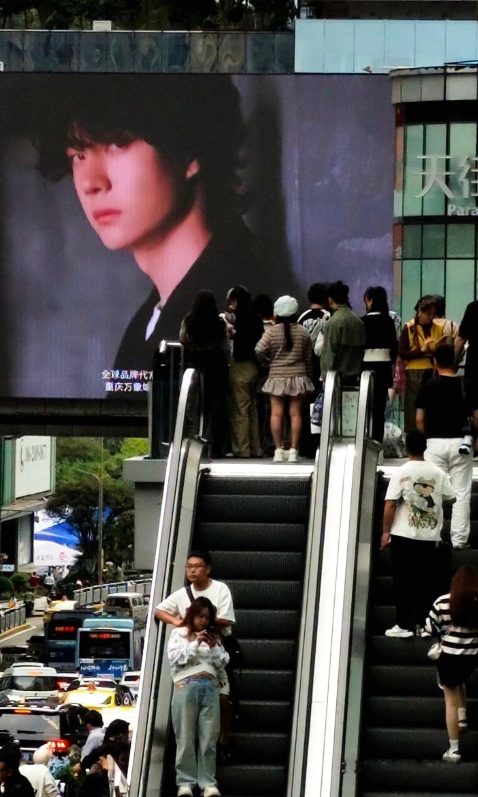 张天爱跟素人合影,胯真的好宽,大宅院似的