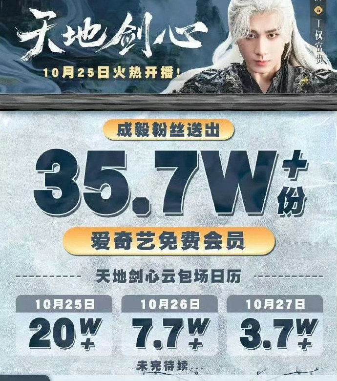 成毅粉丝真有钱![哆啦A夢吃驚][哆啦A夢吃驚][哆啦A夢吃驚]成毅天地剑心三里屯大屏排面成毅粉丝35.7万云包场