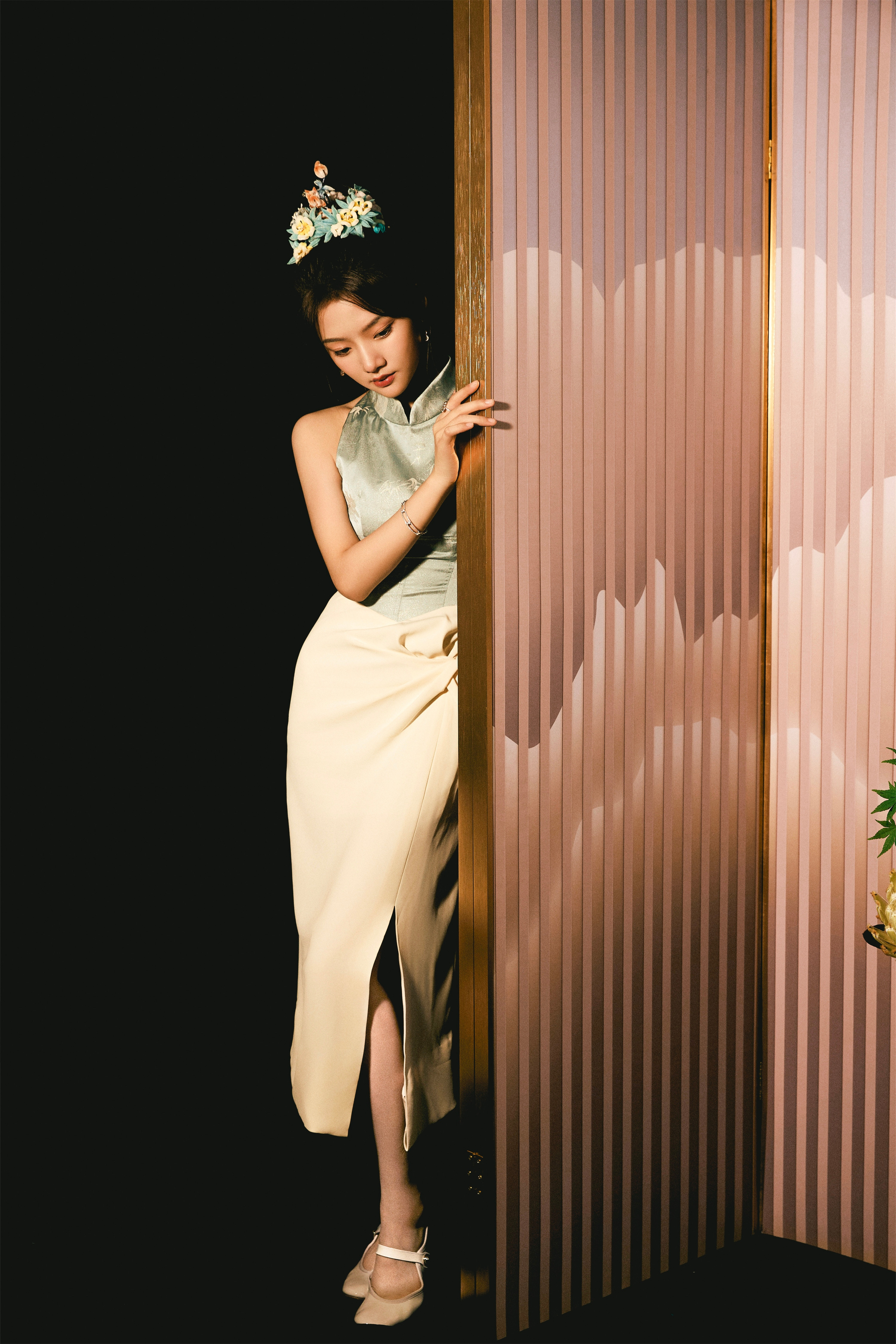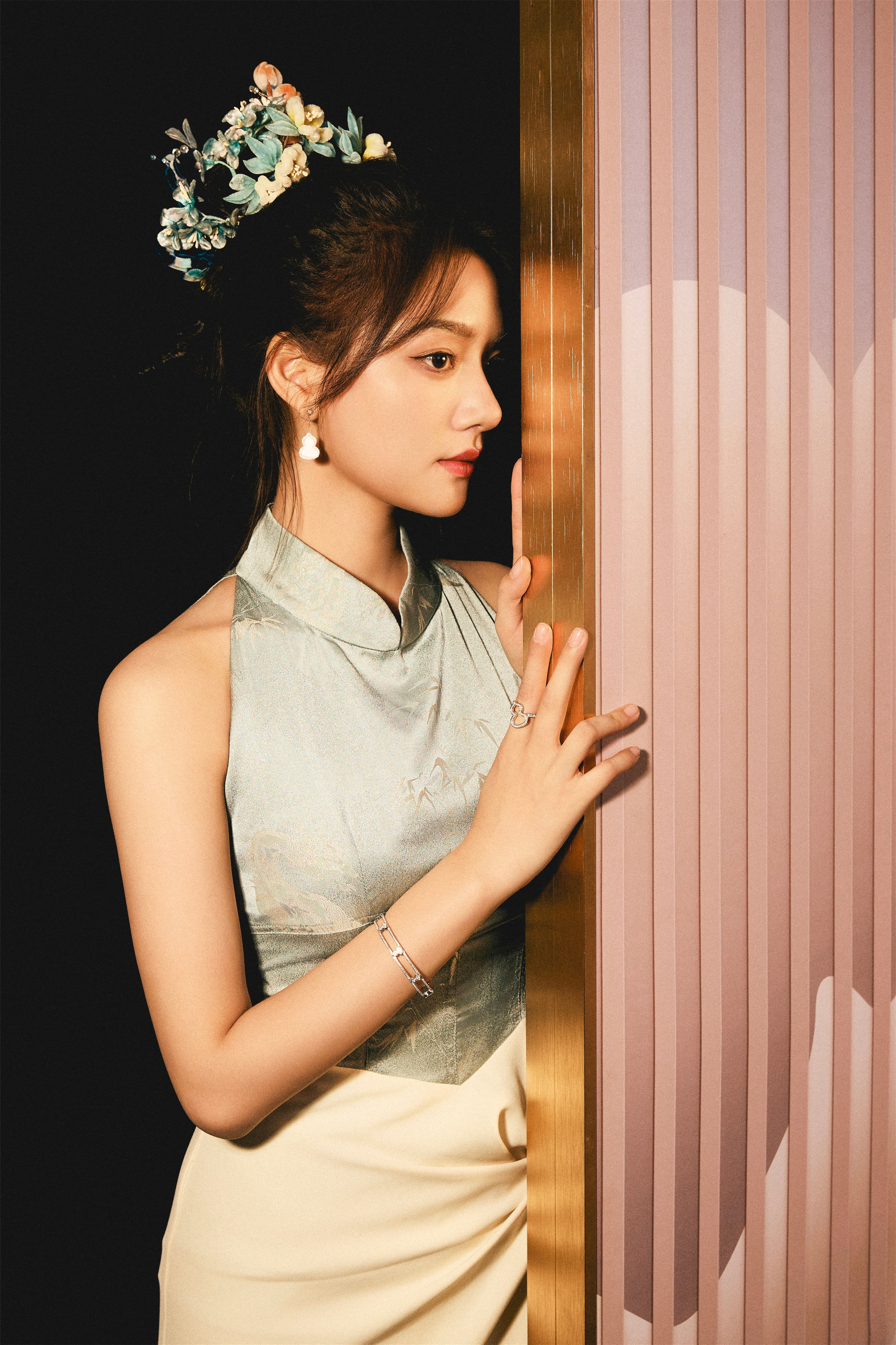王子文露背薄纱裙,金色璀璨,大气怡人