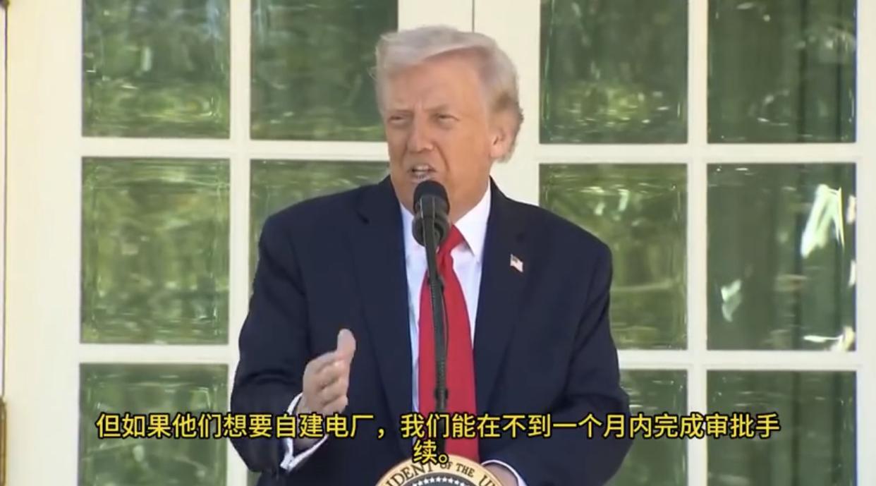 特朗普表示:“中国目前在建52座发电站,但我做了更棒的事,我让每个人都能建造自己的发电站,这样他们除了Al之外,还能像电力公司一样运作,但如果他们想要自建电厂,我们能在不到一个月内完成审批手续,过去被拒绝前,需要5年时间,有时候一个人会被拒绝,在路易斯安那州,他们有一个项目等了12年,最后还是被拒绝了,我上任后两周就批准了。”