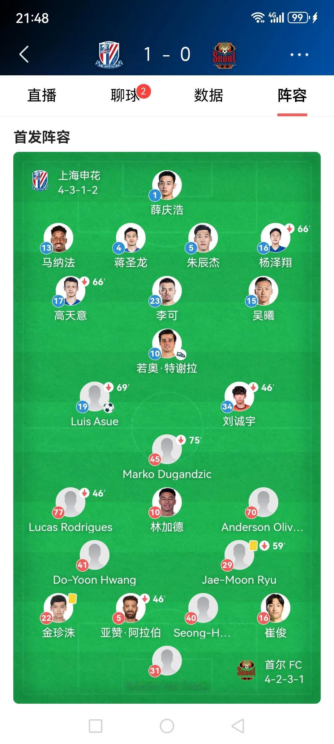 上海申花太争气了,今晚亚冠全主力出战,申花也不为中超留力了,必须为上海申花点赞!上海申花VS韩国首尔FC,上半场双方机会都不多,双方0比0握手言和。 下半场申花茨卢斯基继续加强进攻,换上路易斯、陈晋一和米内罗,申花果然收到奇效,57分钟,特谢拉边路助攻阿苏埃头球破门,上海申花1比0首尔FC,申花太给力啦!后面米内罗错失进球,申花差点扩大比分,目前比赛进行到80分钟,首尔依然找不到破门办法,申花进攻威胁更多,申花挺住,提前恭喜申花1比0拿下胜利,申花为中国球队长脸了,上海申花好样的。