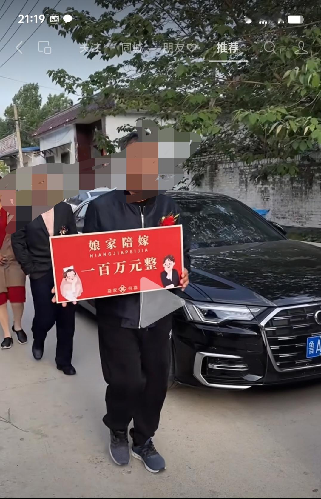原谅我孤陋寡闻了,娘家陪嫁100万这事现在这么多了么? 且不说如今女儿出嫁,娘家能拿出100万的家庭凤毛麟角,尤其是家里有儿子的,而且真有这实力的家庭绝不会如此的高调。 那么举着这个陪嫁100万的牌子,要么只是为了拍录像撑脸面,要么是男方的彩礼加上陪嫁也有可能,但不管咋样,原谅我一个穷人,没见过结婚女方带100万陪嫁的,网络发达了,跟着长见识了。