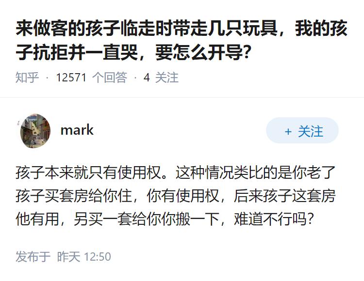 来做客的孩子临走时带走几只玩具,我的孩子抗拒并一直哭,要怎么开导?
