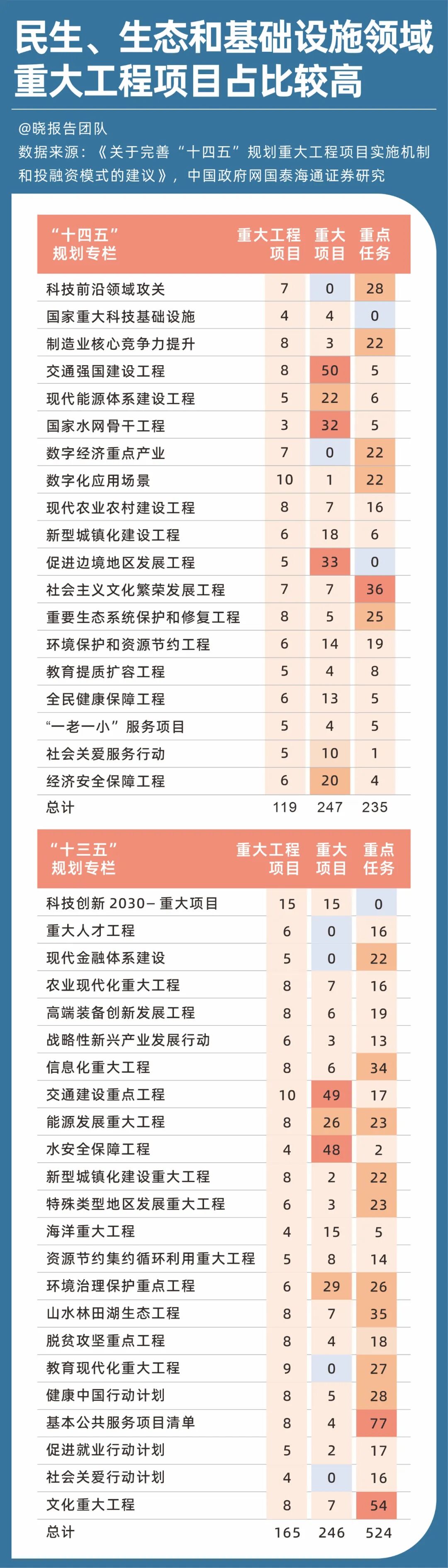 而从“十三五”到“十四五”的趋势来看,“两重”项目中民生、生态和基础设施领域项目占比较高,未来的“十五五”或将延续这种趋势——这也是“集中力量办大事”的生动体现。