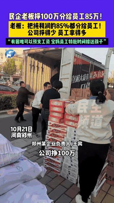 “想不发财都难”!河南郑州冻品行业的郑州千百味商贸有限公司老板王宾表示,公司挣100万会把85万纯利润分给员工,真正做到了“公司挣得少,员工拿得多”。 该公司300多名员工中,有260多人是宝妈。为满足宝妈的特殊需求,公司实行弹性上下班制度,宝妈们接送孩子可以晚来早走,除每周日固定休息外,每月还额外放6天假,相当于每月只需工作20天。此外,公司还允许有困难的员工预支工资。 在这种分配模式和管理理念下,员工收入可观,有宝妈员工当月工资拿了29000元,还有工作两三个月的宝妈月薪达到5万元。王宾表示,自己家中也有两个孩子,深知宝妈重返职场的不易,想给她们提供一个平台,让她们实现经济独立,而且宝妈工作也更用心