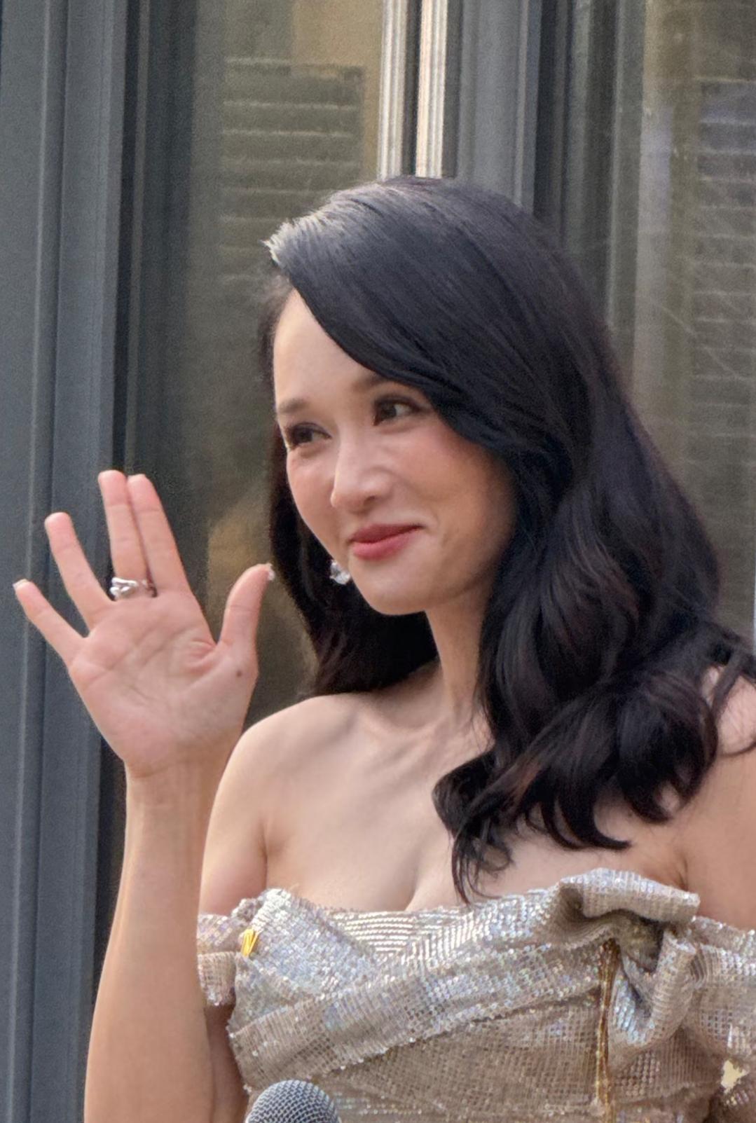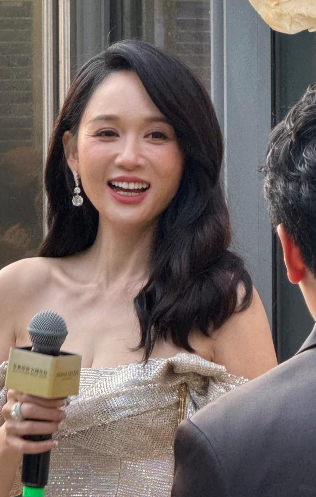 明星也老了呀!在亚奥万象天地撞见陈乔恩啦!她穿一身闪片露肩裙,原相机里的法令纹、