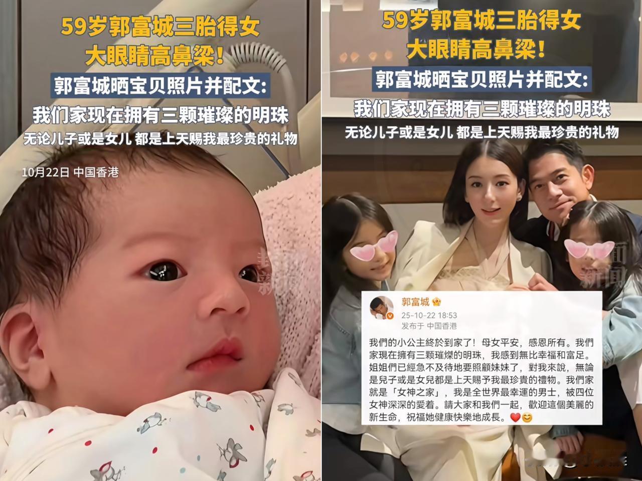 都在说郭富城三胎还是女儿太可惜, 说他是“四大天王”里唯一能打破 “没男孩”魔咒的希望,这下彻底破灭了! 可这话听着真别扭,什么时候当爸的幸福,要靠“有没有儿子”来定义了? 今年60岁的他,官宣三胎是女儿时,眼里的笑意藏都藏不住,哪有半分“可惜”的样子? 大家总说“想要男孩继承天赋”,可他舞台上的光芒、对生活的认真,难道只有儿子才能学去? 三个“小棉袄”围着他笑,这份热闹和贴心,可比“凑个好字”实在多了。 再说“有心无力”的猜测,倒不如说他更懂什么是圆满——不是非要追个男孩才叫完整,而是每个孩子的到来,都用满心欢喜去接住。 你们觉得,比起“有没有儿子”,当爸的这份满足感,是不是更该看他眼里的光?