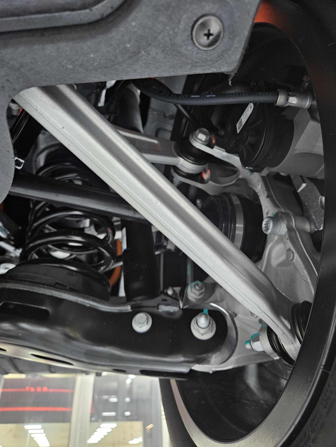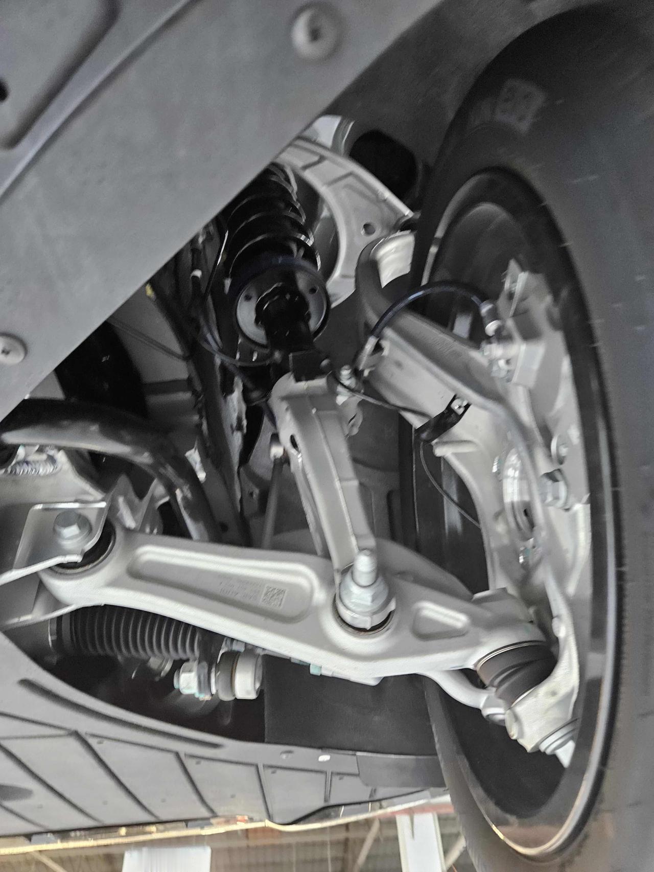 E5底盘这么扎实。 这车我最近也在车间蹲过一次,专门趴地底下看了眼E5的底盘,老实讲,这台车底子比我预期的要“实在”得多。 先说结构,电池这块儿是关键,E5外层用了整圈铝合金框架包裹,强度和防护性都比一般电池舱那种“塑料板+护板”方案靠谱多了。别小看这玩意,一旦遇上底部剐蹭或者碎石冲击,这层“铝圈护体”能省大事。 前悬架我也仔细摸过,铝合金下摆臂,工艺平整、焊点规整,不像有的车还能看到毛边。这个地方其实是看厂方有没有真下本的试金石——很多入门纯电车图便宜还用钢制的,轻量化根本谈不上。 后悬架用的是多连杆,板板正正没偷工减料。这套结构在同价位车型里算比较厚道的了。它的优势是:过弯支撑性强、乘坐舒适度也能兼顾,不容易出现那种“弹跳感”。 当然,底盘扎实归扎实,它并不意味着调校就一定高级。后续要看厂方在减震器阻尼、转向手感上的标定功夫。但从硬件上讲,E5确实把成本花在刀刃上。 我个人观点——如果你在意“开起来有底气”,而不是单纯追求内饰花哨、屏幕多,那E5这套底盘结构,算是同级别里比较靠谱的一档。