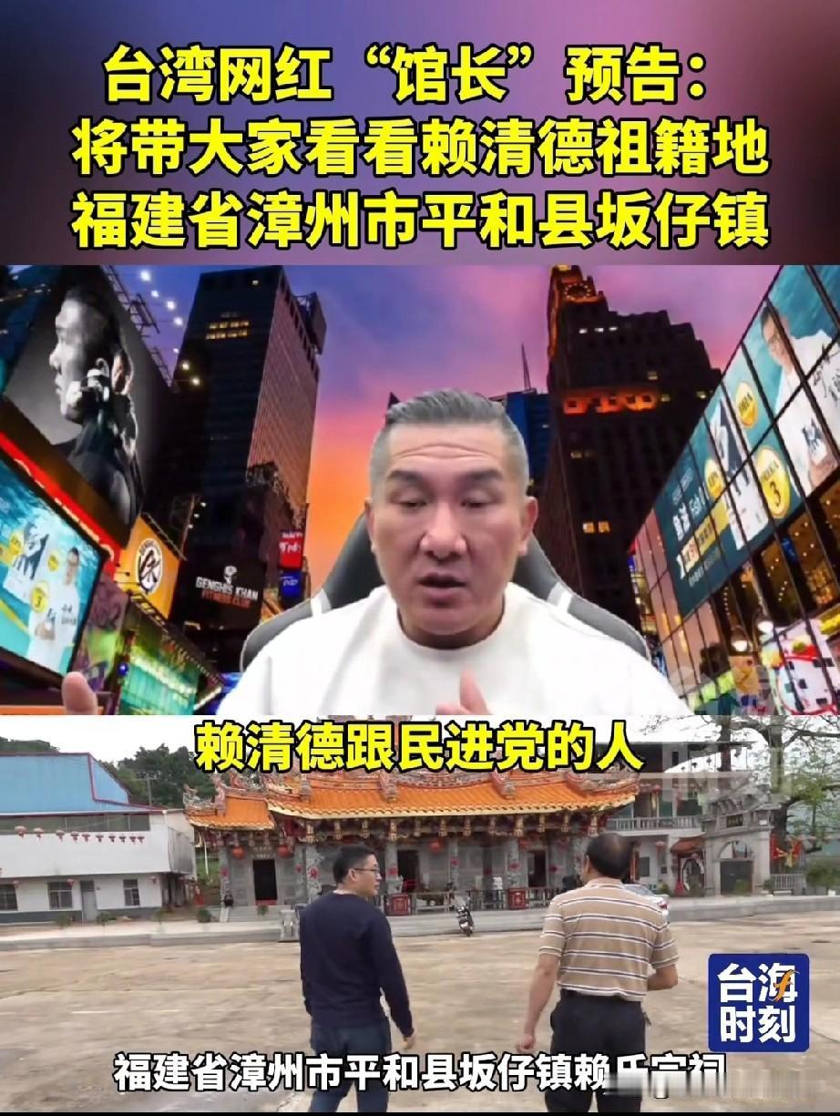 馆长爆出大瓜,要带大家去看看赖清德的祖籍地福建漳州市某村,让大家都看看,他到底是
