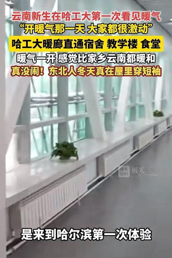 万万没想到哈工大以这种方式火了!近日,哈工大开启暖气第一天,有来自云南的学生对着媒体坦言:“开暖气第一天,大家都很激动,感觉比家乡云南都暖和!” 据极光新闻10月22日报道,当北国的寒风卷着碎雪掠过哈尔滨工业大学校园,一位来自云南的女新生正站在宿舍楼道里,目光紧紧盯着墙壁上那排散发着热浪的金属装置——这是她十八年来第一次见到暖气。 彼时,教学楼与宿舍、食堂之间的暖廊早已贯通,热气顺着通道蔓延,将室外零下十几度的严寒彻底隔绝在玻璃门外,而这份突如其来的温暖,让她瞬间红了眼眶。 这位新生从未想过,北方的冬天竟能如此“热烈”。 在云南的冬日里,即便气温不算极低,阴冷的湿气也总像附骨之疽,穿再多衣物也难抵寒意,夜晚睡觉更是常要裹紧厚被子。 可此刻在哈工大,从踏入暖廊的那一刻起,厚重的羽绒服便成了累赘,她换上轻便的便衣,穿梭在教学楼与食堂之间,感受着无处不在的暖意。 宿舍里,暖气持续散发着热量,连睡觉时的脚丫都能保持温热,这种无需依赖电热毯、热水袋的舒适,让她忍不住一次次触摸墙壁上温热的暖气片,满心都是新奇与震撼。 更让她惊喜的是,暖气房里穿短袖都不觉得冷,偶尔咬一口冰凉的冰棍,冷热交织的体验更是颠覆了她对冬日的所有认知。 这份震撼的背后,是南北过冬方式的巨大鸿沟。 北方的集中供暖早已是冬季标配,像哈工大这样,通过暖廊将宿舍、教学楼、食堂等核心区域串联,形成全校园无死角的供暖网络,更是让冬季校园生活多了份从容。 而在南方,多数地区没有集中供暖,室内外温度相差无几,阴冷潮湿的“魔法攻击”常常穿透衣物,让人浑身发冷。 尤其是连续阴雨天气时,被褥都带着湿气,即便裹着厚外套,也难掩骨子里的寒意。 不过这位云南新生也清楚,家乡的冬日并非全无优势,晴好天气里,阳光洒在身上的温暖,比北方干燥的暖气房更显柔和,只是这种舒适在阴雨天气里便会荡然无存。 哈工大暖气带来的惊喜,很快便超出了个体体验的范畴。 当这位新生的感受被分享出去后,瞬间引发了南方网友的集体共鸣。 无数南方人在评论区留言,诉说着对北方集中供暖的羡慕,直言“隔着屏幕都觉得暖和”。 更有网友回忆起自己的求学经历,有人说当年在南方高校过冬,即便下着大雪也只能睡凉席,复习时要抱着暖气片才能集中精神; 也有人感慨,能在哈工大这样既有优质教育资源,又有完善供暖设施的校园学习,实在是难得的幸运。 还有东北网友骄傲地分享,冬季在东北生活,无需畏惧严寒,慢节奏的日子里,研究美食、享受暖气房的温暖,便是最大的幸福。 今天的分享到这里就结束了,大家对此事有何看法,欢迎在评论区留言和讨论,感兴趣的可以点击头像加关注,我将每日更新优质内容,我们下期见。 信源: 原文登载于极光新闻2025年10月22日关于《云南新生在哈工大第一次看见暖气!“开暖气那一天 大家都很激动”》的报道
