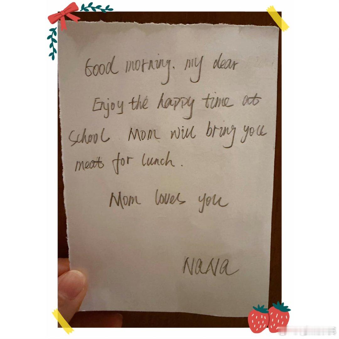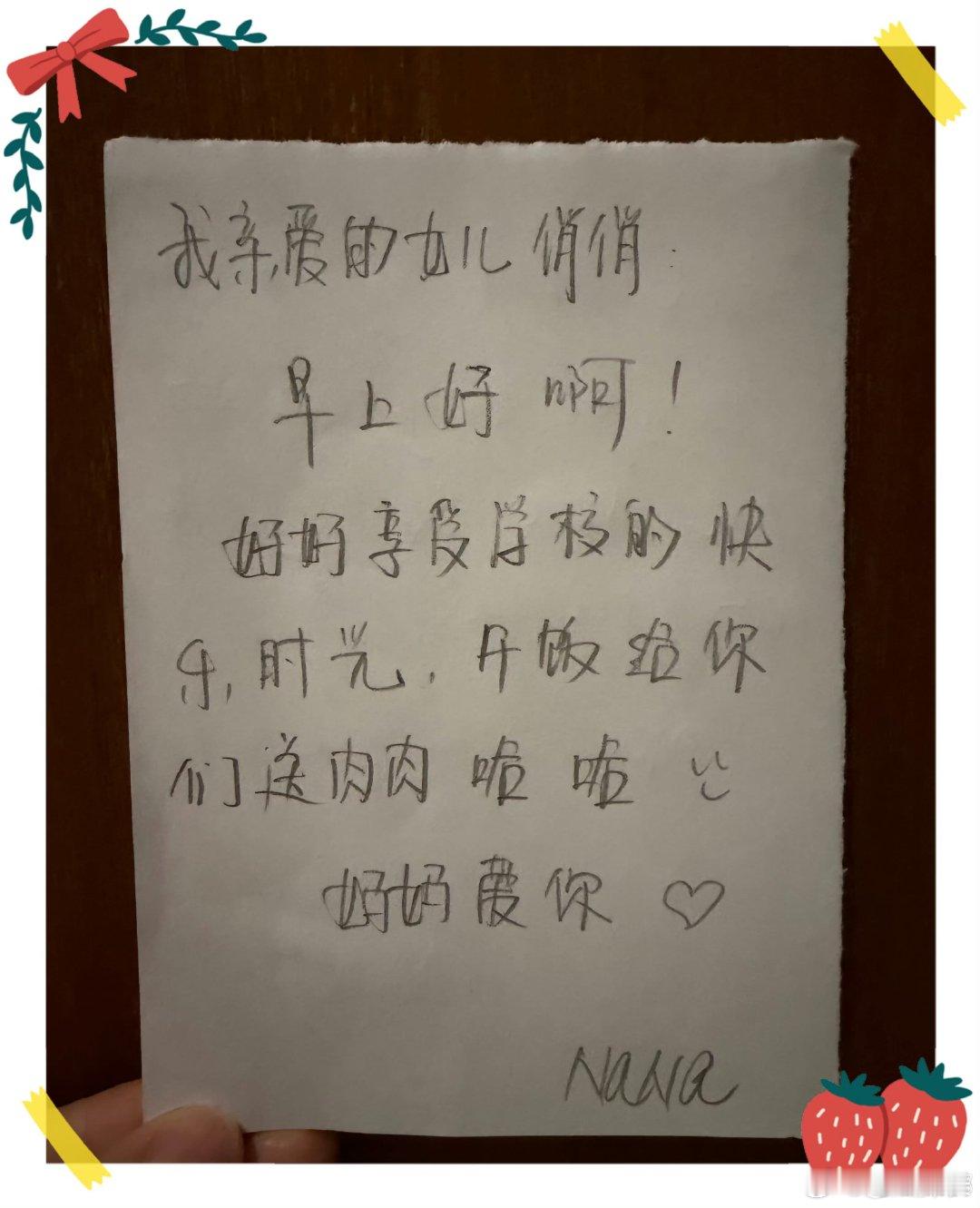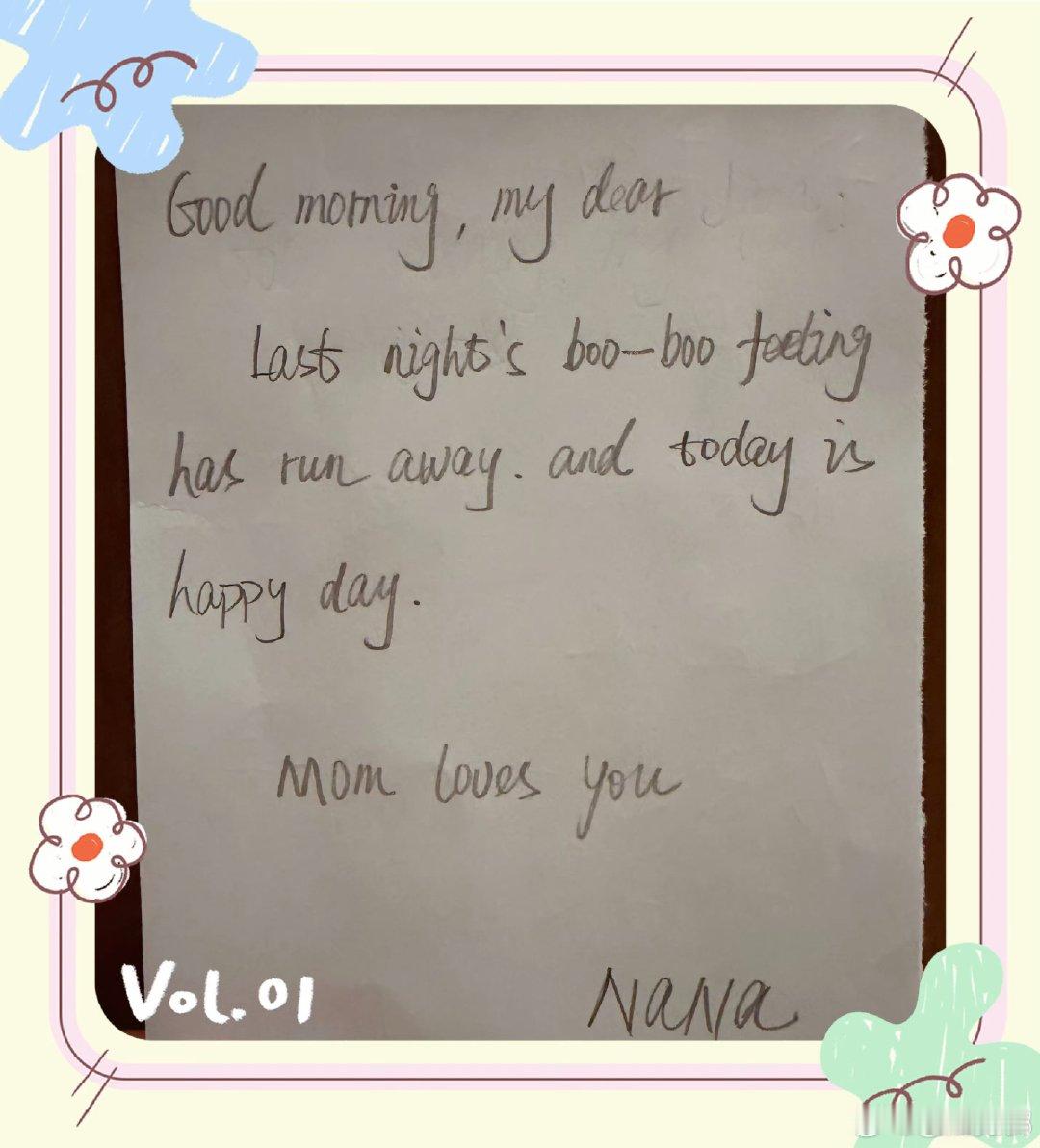 谢娜给跳跳俏俏写了早安小卡片谢娜睡前给跳跳俏俏写了卡片谢娜女儿喊姐妹来看戏精妈妈演戏太可爱了,谢娜哄完女儿还写双语卡片给女儿,跳跳俏俏每天醒来看到这样的早安卡,一天的心情都要起飞了吧~