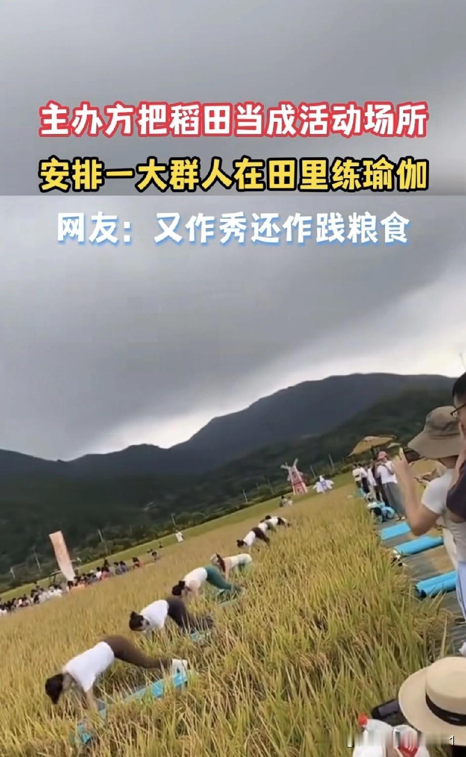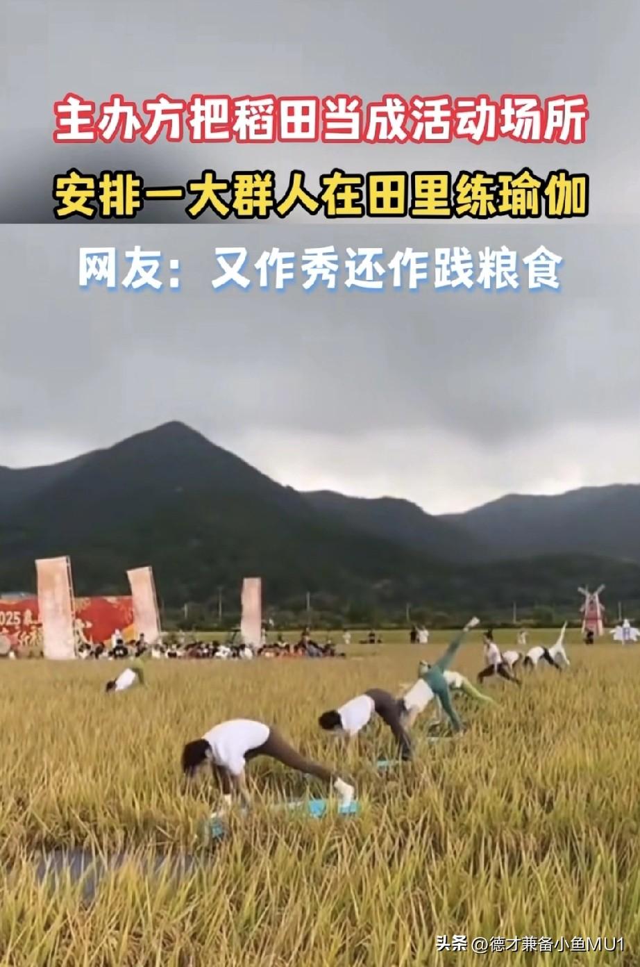 稻田里开展瑜伽活动,主办方选的这个场地引发了网友的热烈讨论。练瑜伽为何非要选在稻