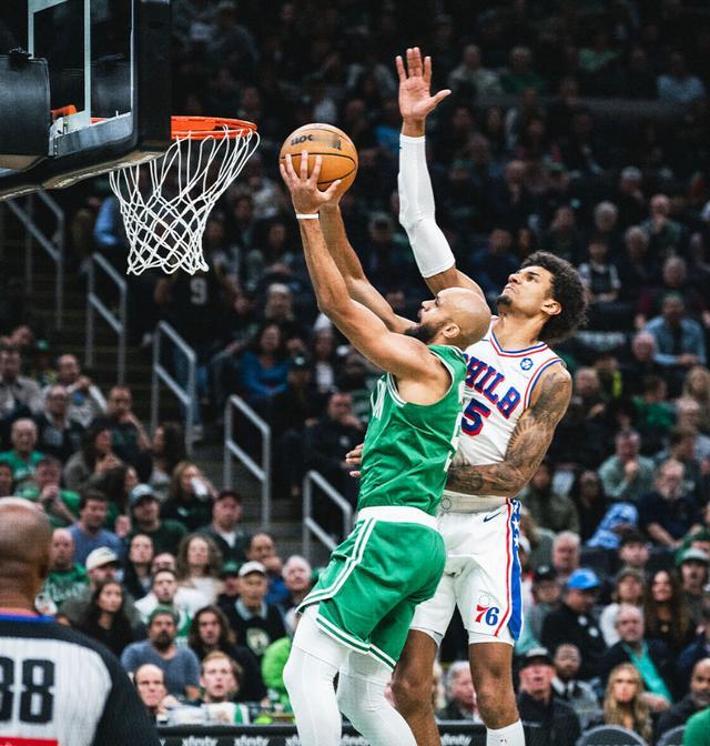 NBA常规赛,费城76人117-116逆转凯尔特人 北京时间10月23日,NBA常规赛,费城76人以117-116逆转波士顿凯尔特人。这场比赛上半场打完都是费城领先,但第三节费城突然崩盘一度落后13分,末节费城双枪疯狂追分,还剩1分16秒乌布雷的三分命中已经反超,随后打到最后一刻绿凯绝杀不中,费城逆转成功。