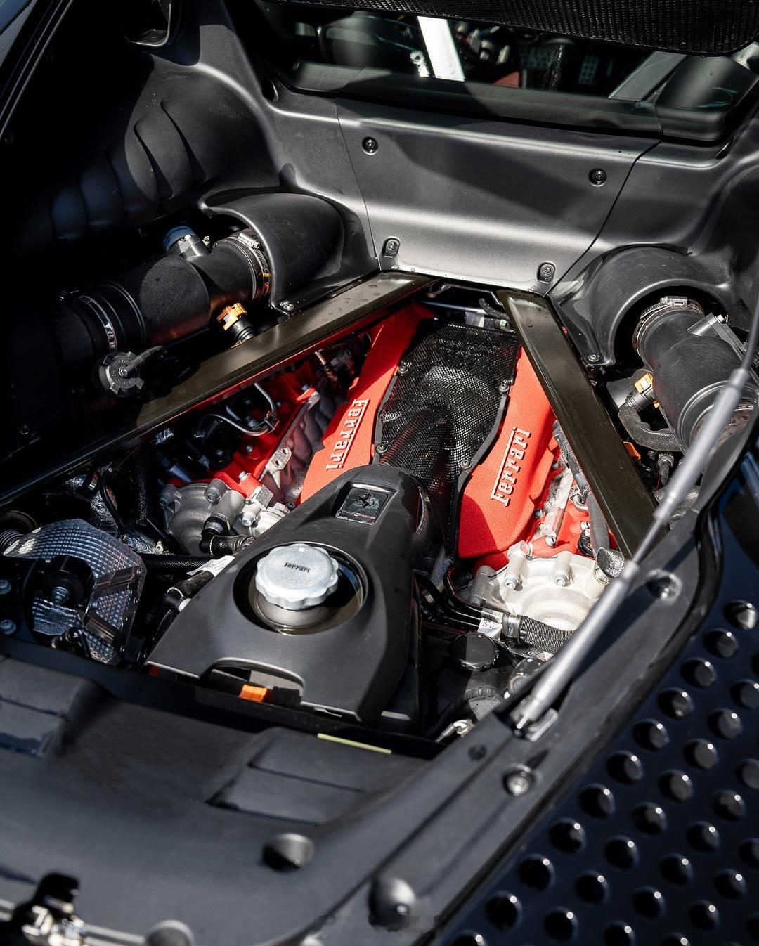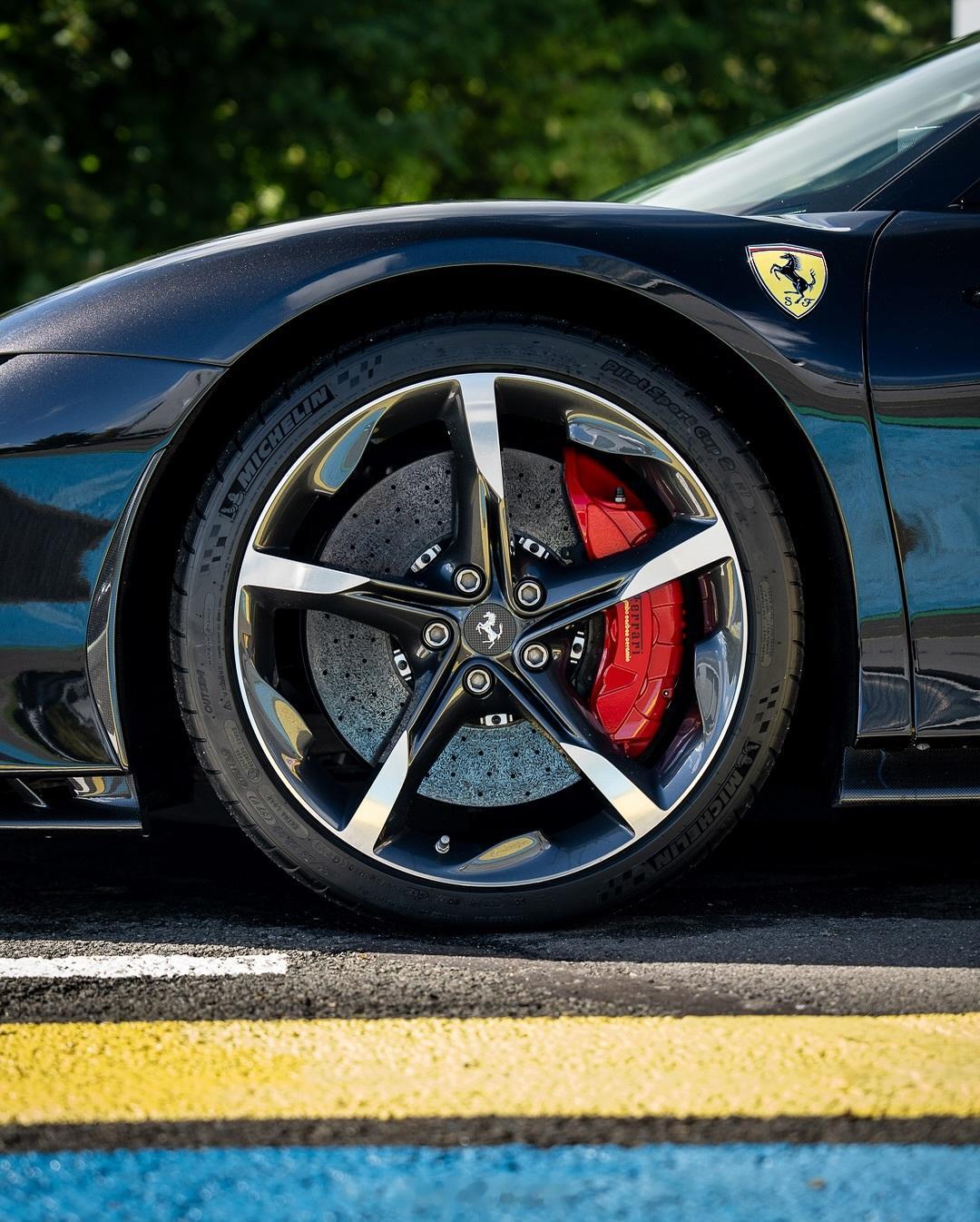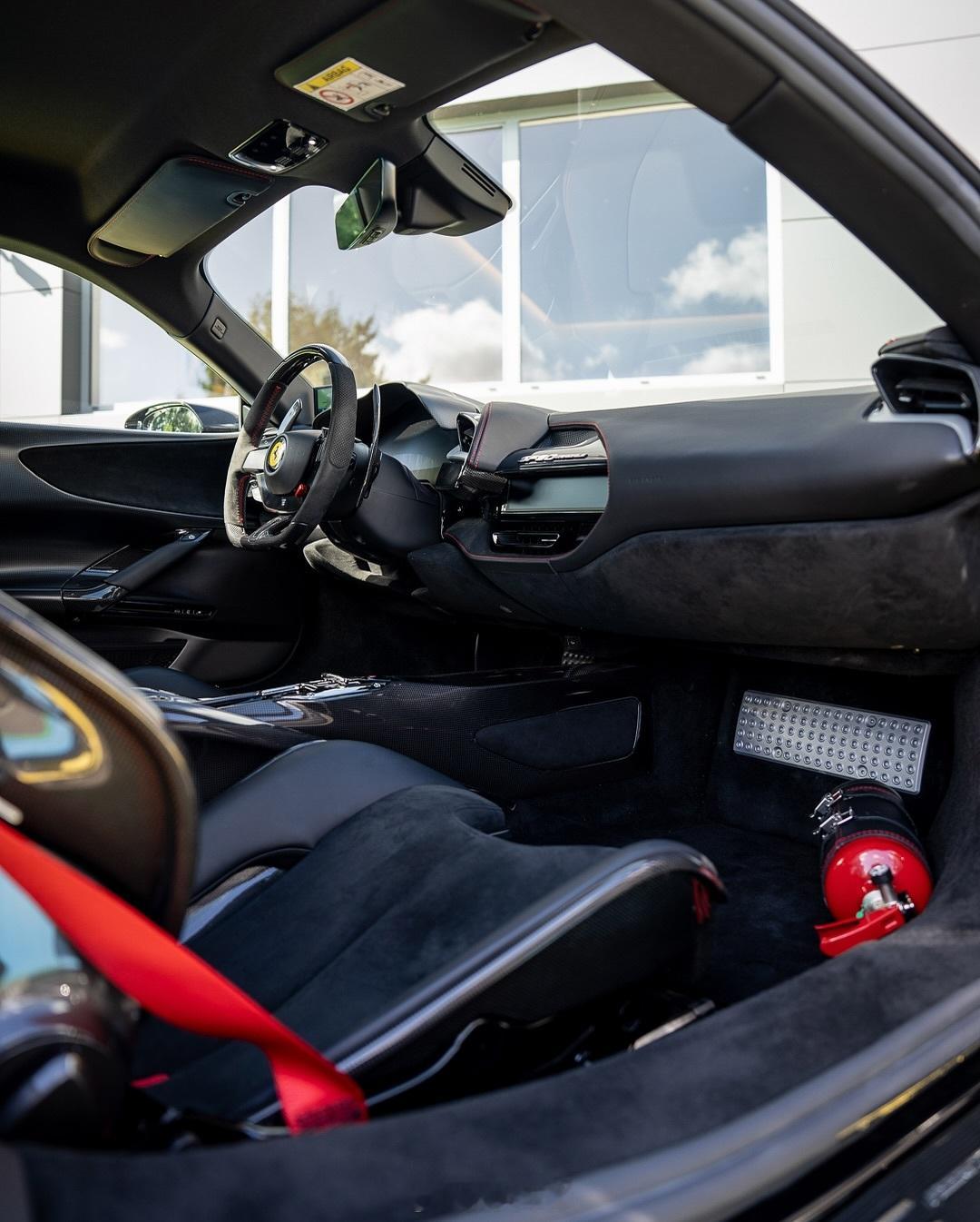 配备Assetto Fiorano赛道套件,车身采用Daytona黑漆涂装,搭配锻造钻石切割轮毂、Corsa红刹车卡钳及跃马徽标