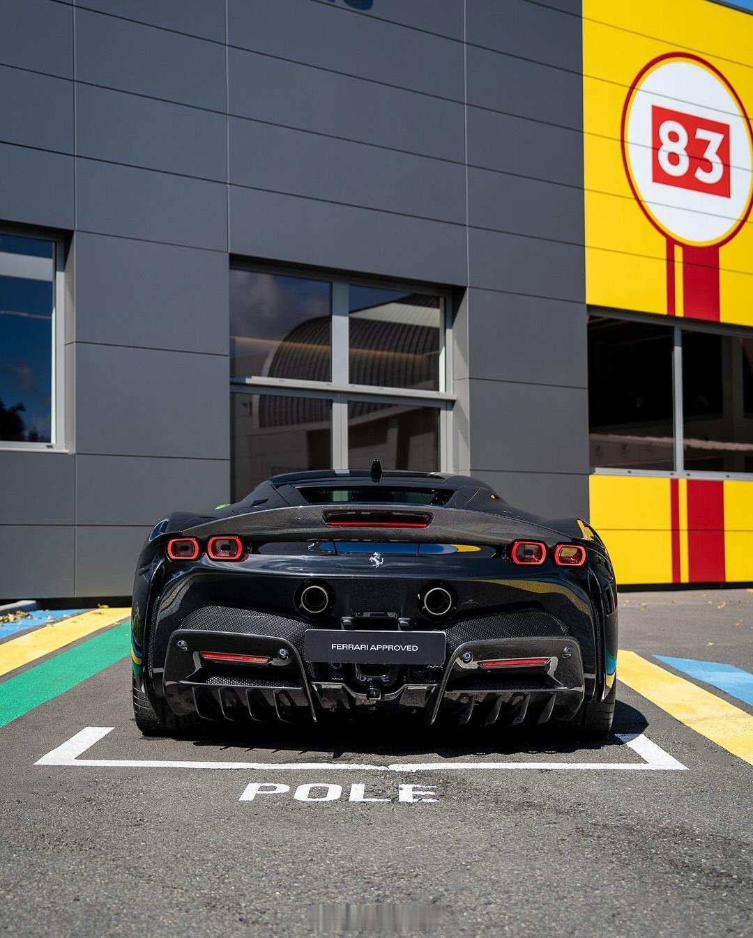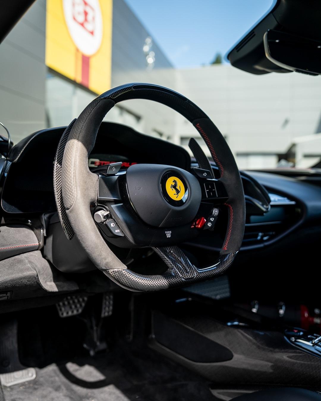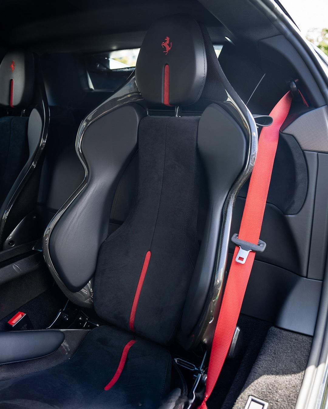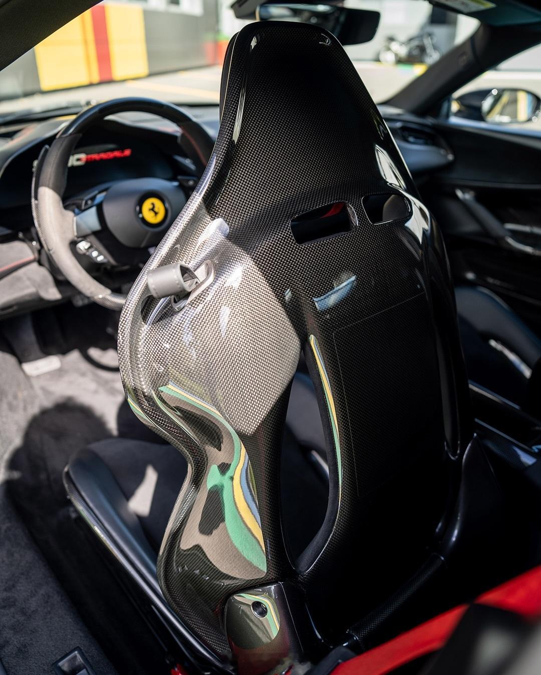 配备Assetto Fiorano赛道套件,车身采用Daytona黑漆涂装,搭配锻造钻石切割轮毂、Corsa红刹车卡钳及跃马徽标