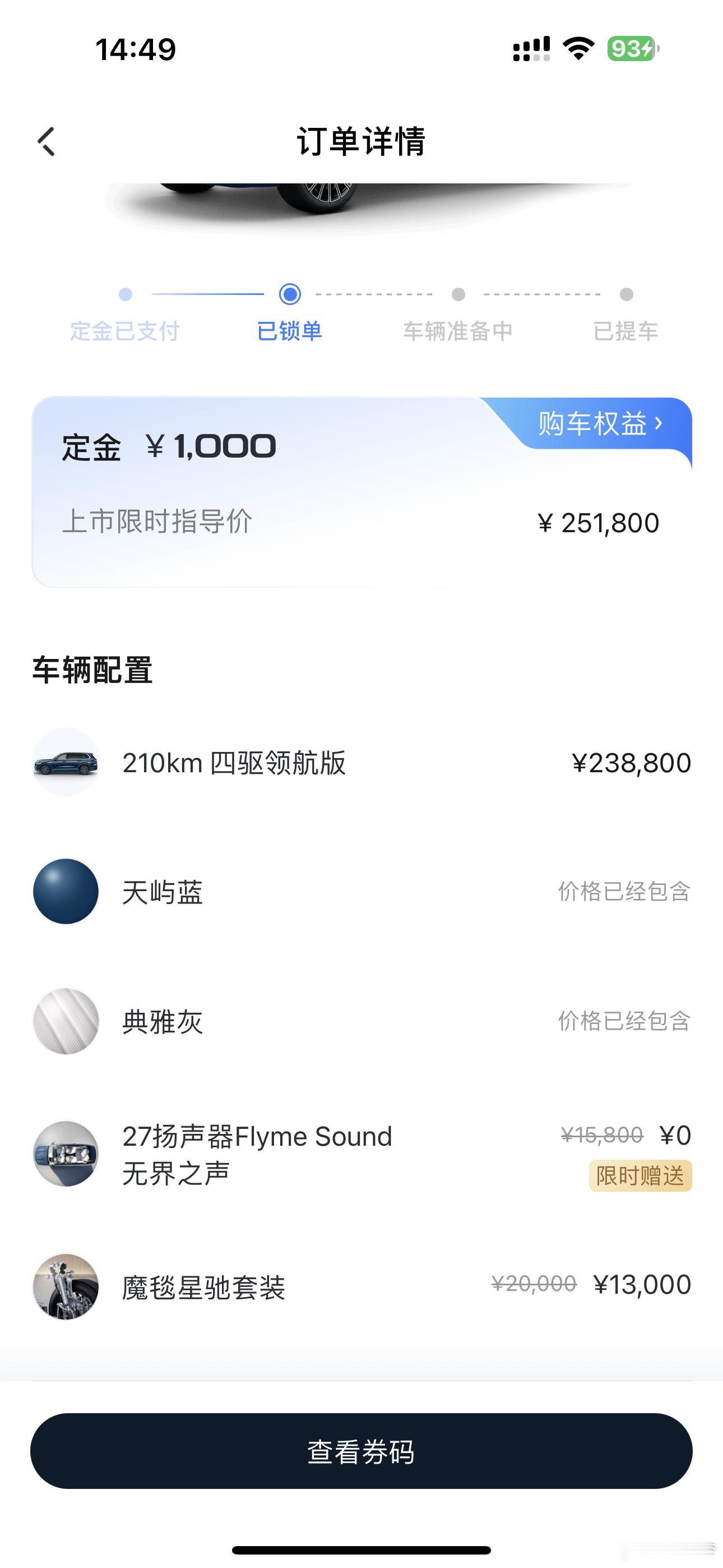 直接一步到位,顶配+魔毯星驰(因为还有权益,选下来很划算)我之前也做过一期选购推荐,我也算是遵从内心,无脑上了顶配,颜色因为没有红色,所以选了蓝色,其实白色我也很推荐[并不简单]大v聊车