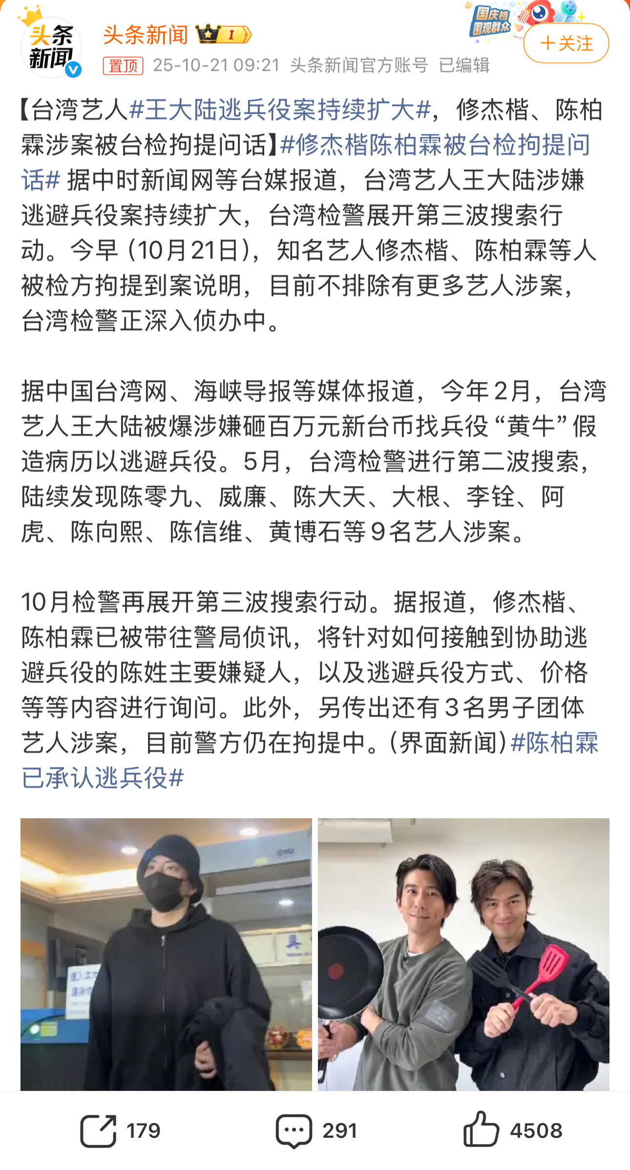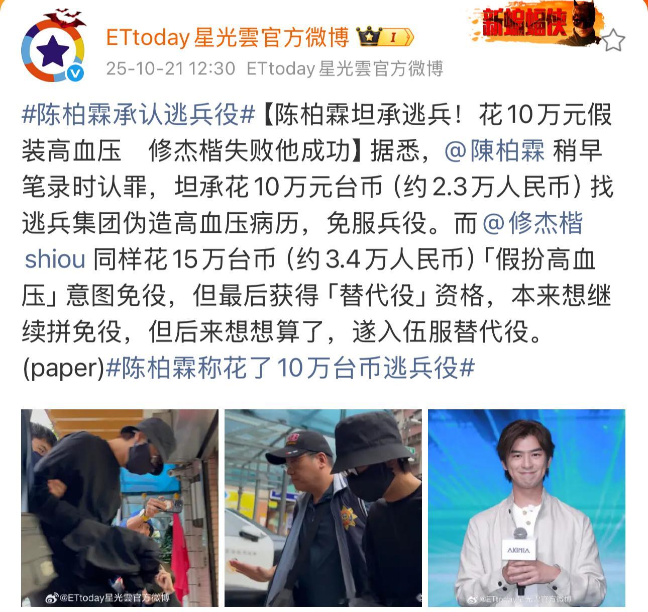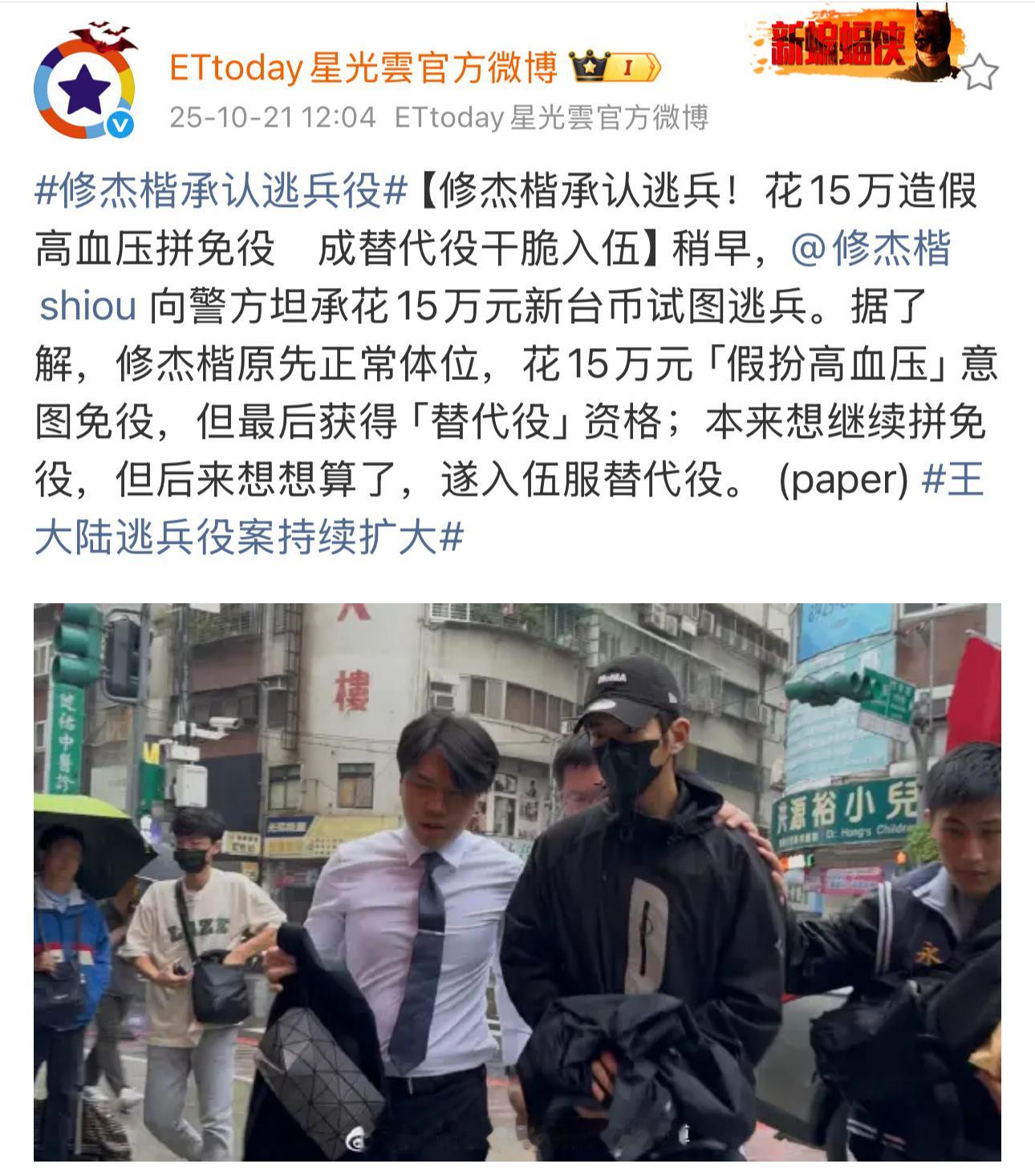 王大陆逃兵役案持续扩大修杰楷承认逃兵役陈柏霖已承认逃兵役