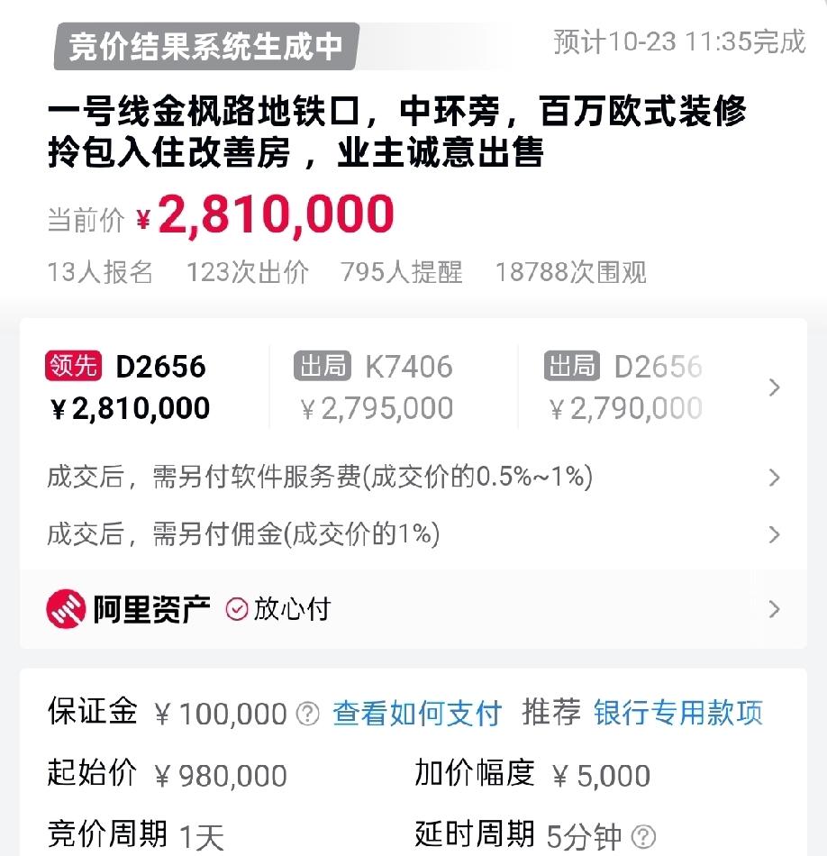你敢信吗?1套定价98万起拍的房,经历了123次的出价,上百次的延迟,最终成交价