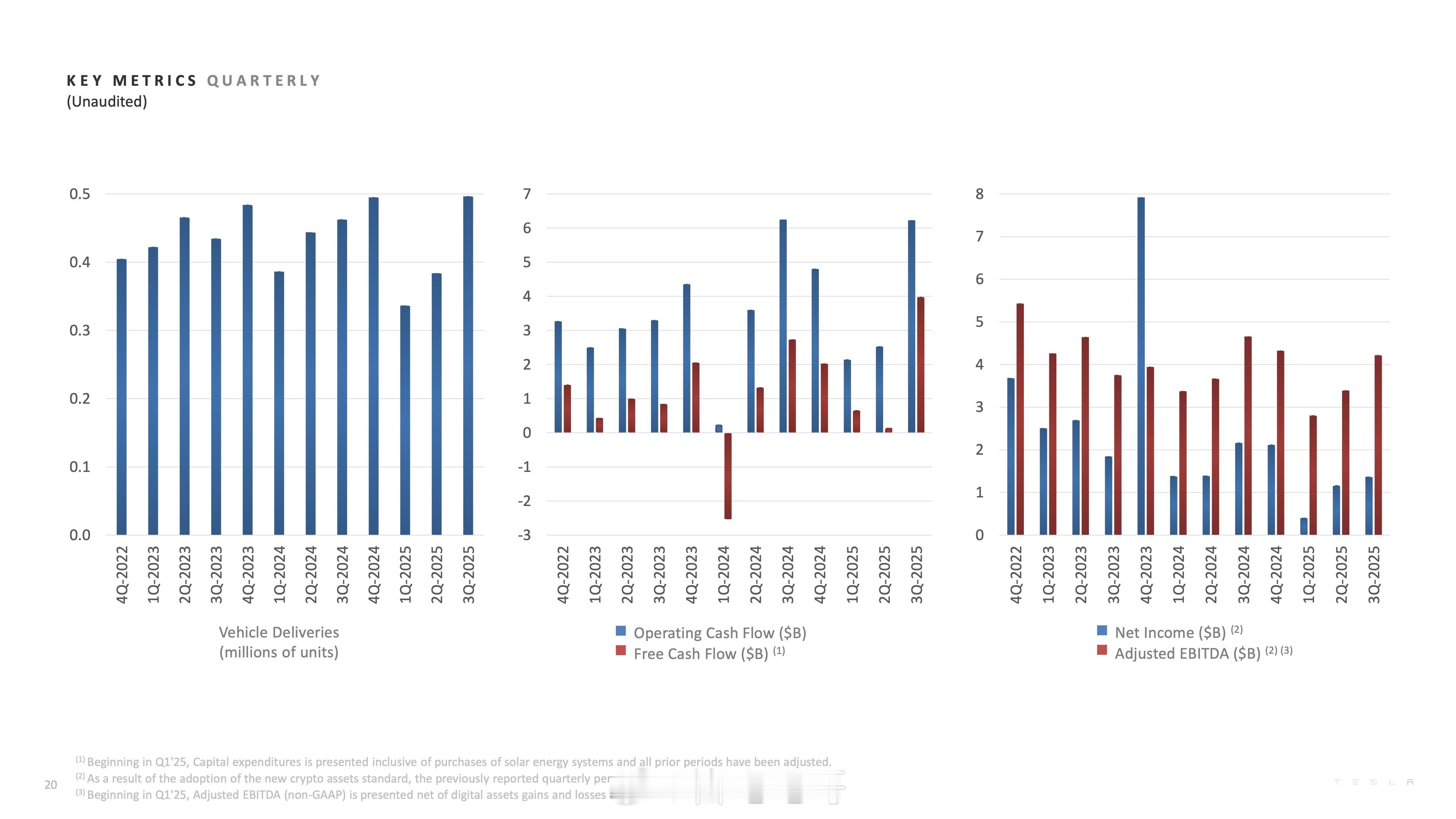 对于净利润的大幅下滑,特斯拉给出的解释是研发、AI、管理费用上升;FSD买断收入下降;平均单车成本上升以及法规积分的收入降低了。