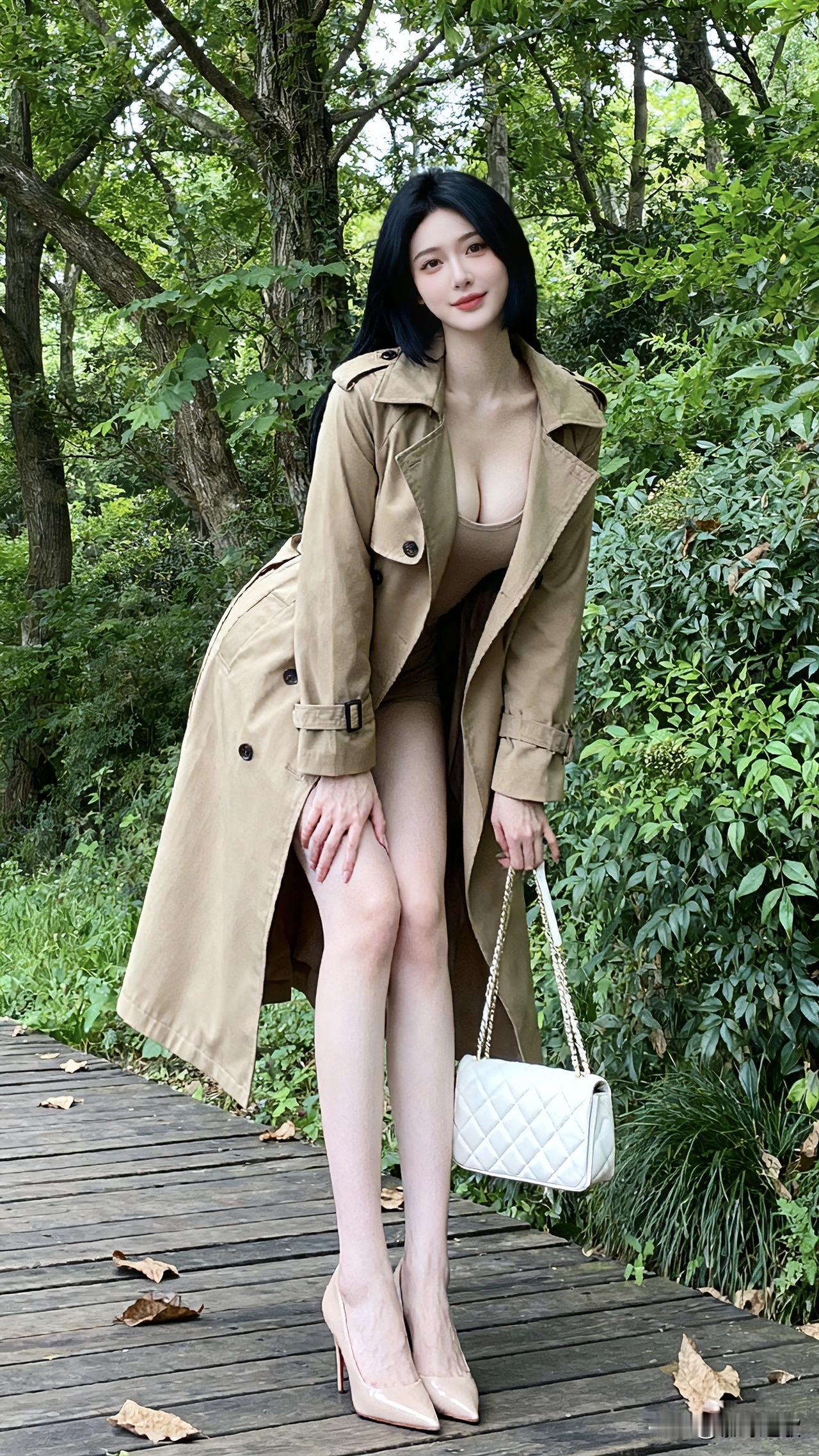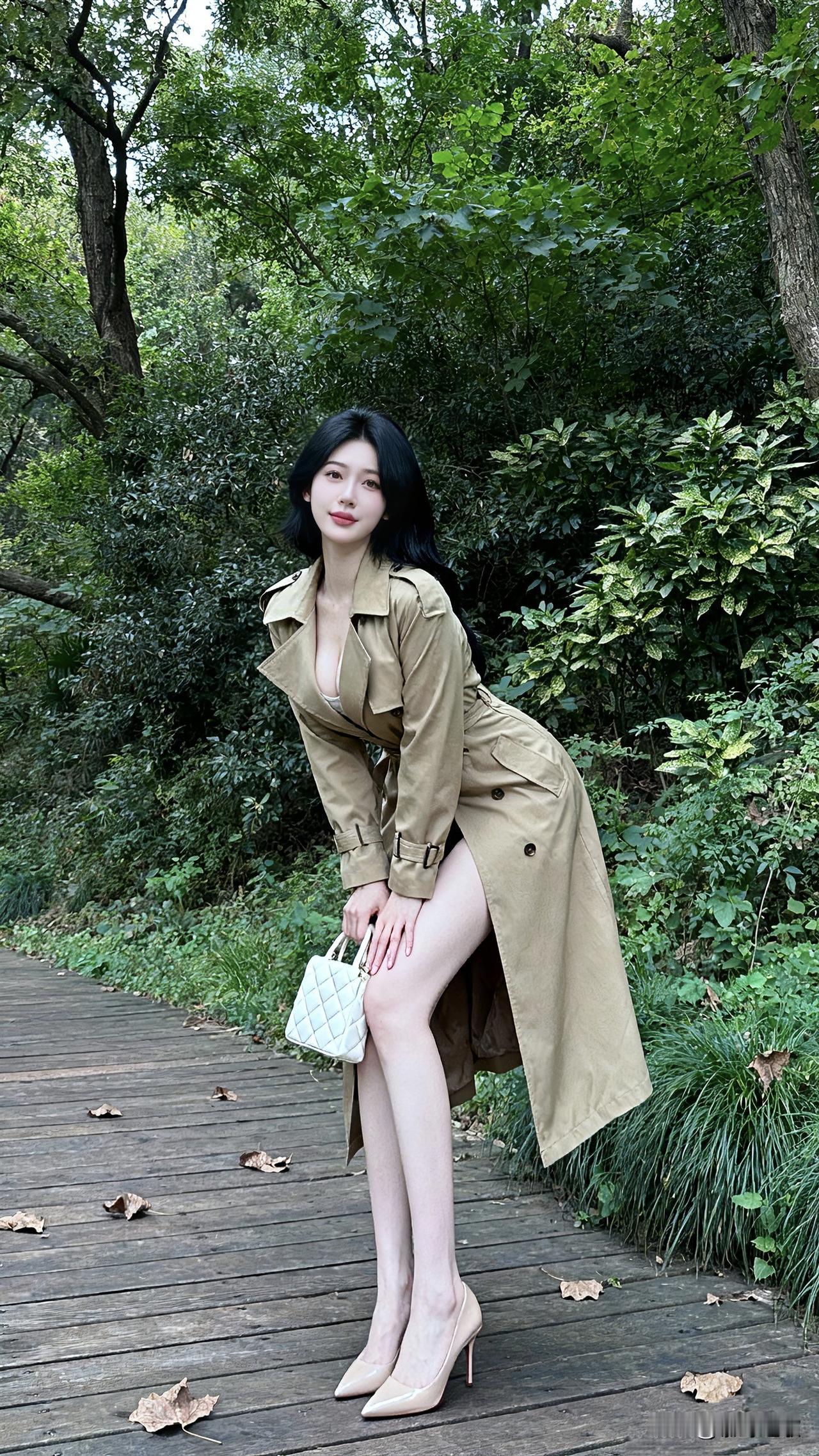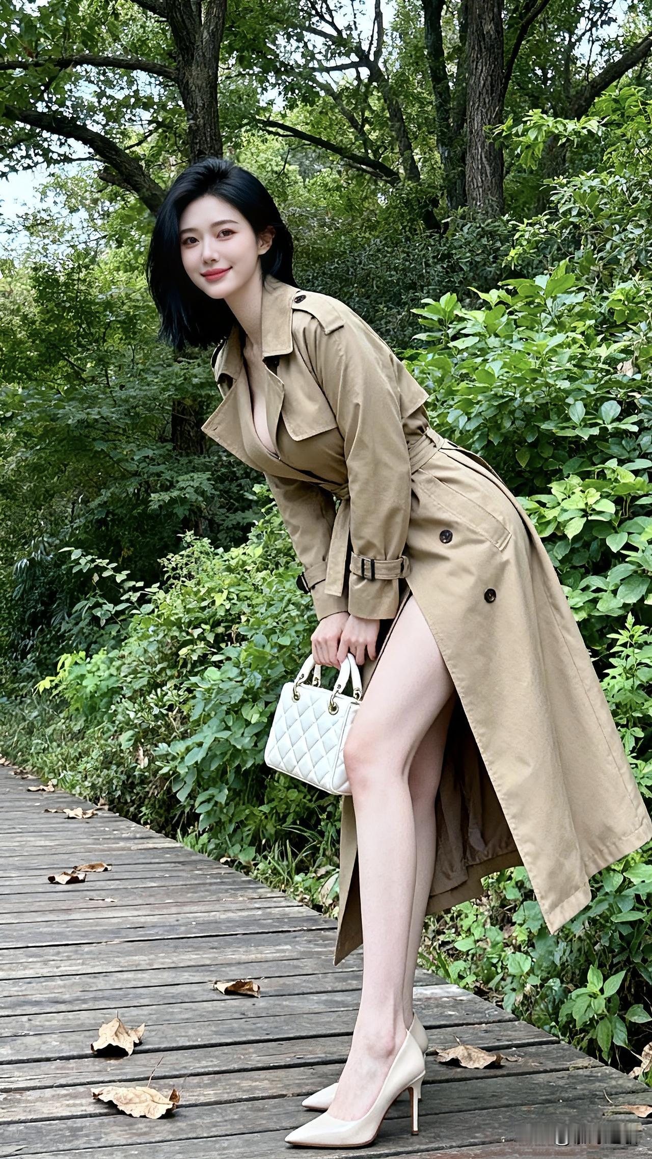 林间媚影!风衣这样穿真靓!在林间栈道拍出的“氛围感时尚大片” 多数人以为风衣只能通勤穿,其实在户外也能玩出高级感! 一、选款技巧:挑对风衣,轻松打造“行走的时尚画报” - 长度选及膝款,既能修饰腿型,又能和自然场景形成视觉层次; - 优先选带腰带的版型,系上凸显腰线,解开又多了份随性飒爽。 二、搭配思路:3个小心机,让你在绿植背景里超出片 - 内搭选同色系裸色单品,简约又显高级,还能和风衣形成质感呼应; - 鞋子配裸色高跟鞋,延长腿部线条,从画面里“拔”出大长腿既视感; - 拎一只白色菱格包,点亮整体造型,在绿色背景里更显清新。 三、拍照姿势:照着做,你也能拍出“杂志感” - 互动式摆拍:弯腰轻触小腿,自然又显身材; - 松弛感坐姿:在栈道长椅上舒展身体,闭眼享受林间风,氛围感直接拉满。 你平时喜欢什么风格的秋日穿搭?评论区聊聊,揪1位宝送“风衣搭配灵感手册”一份~气质风衣穿搭 风衣女款高级感 卡其风衣穿搭 哪种身材的女人穿衬衣半裙好看 分享今天的随手拍!