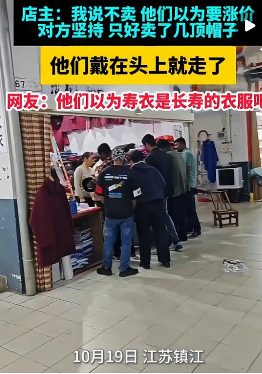 外国人扎堆寿衣店这事儿,没想象中那么离谱。几个外国游客逛街看见寿衣店,被绣松鹤的衣服吸引,觉得好看想试穿,店主急得摆手,连比划带解释,说这是给长辈准备的,不能随便穿。游客听完明白了,没再强求,最后挑了几顶鲜艳的帽子,15块钱一顶成交,拿着帽子乐呵离开,店主也松了口气,这单生意做得明白。你说这文化差异闹的误会,最后变成互相理解的好事儿,多好?