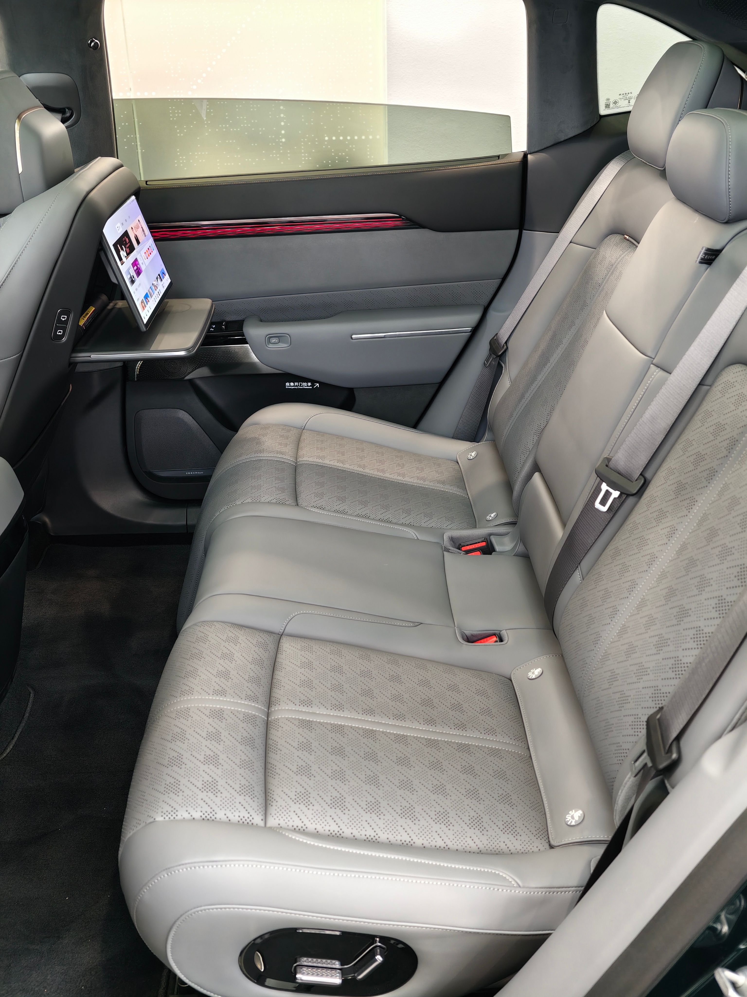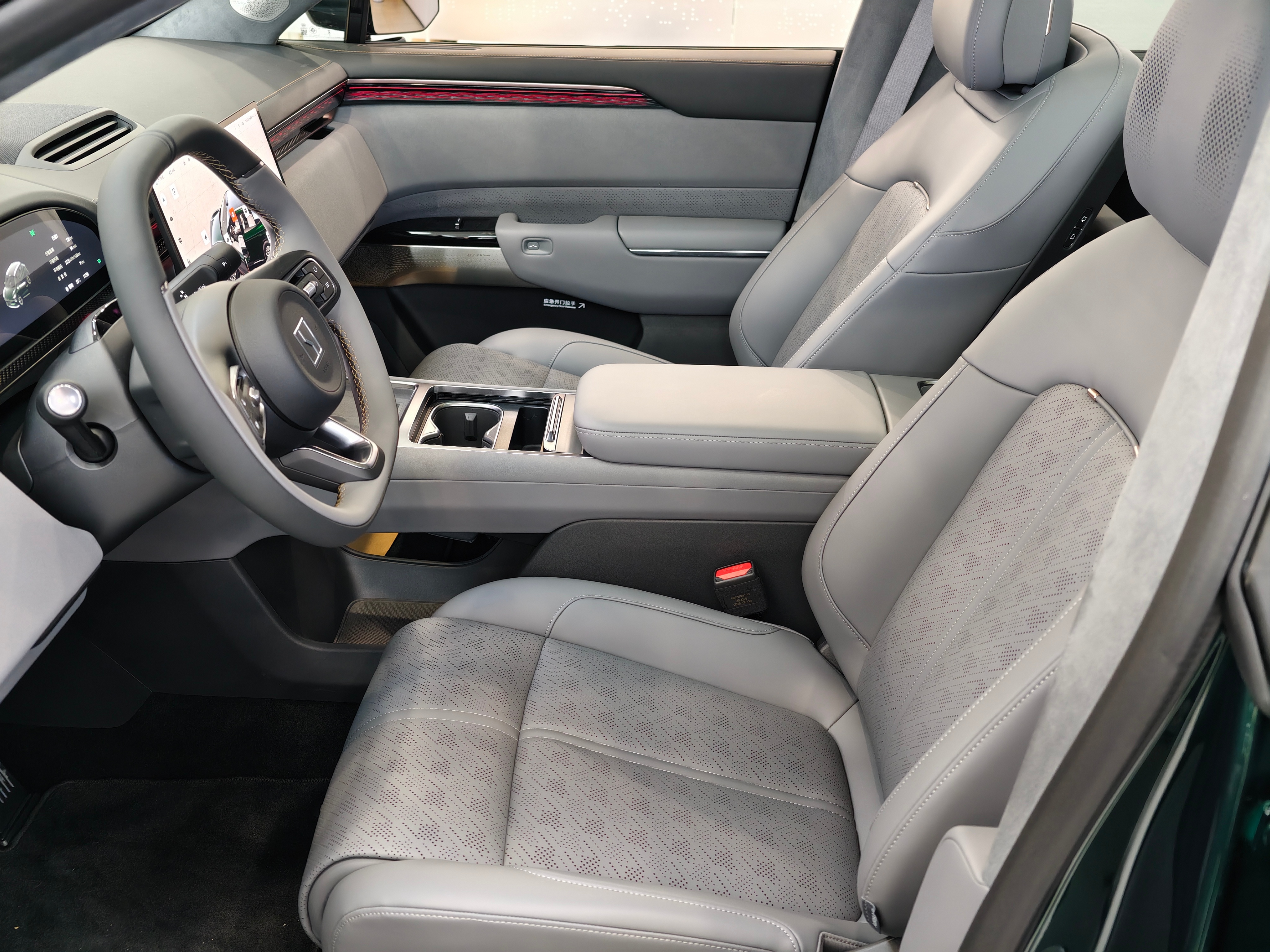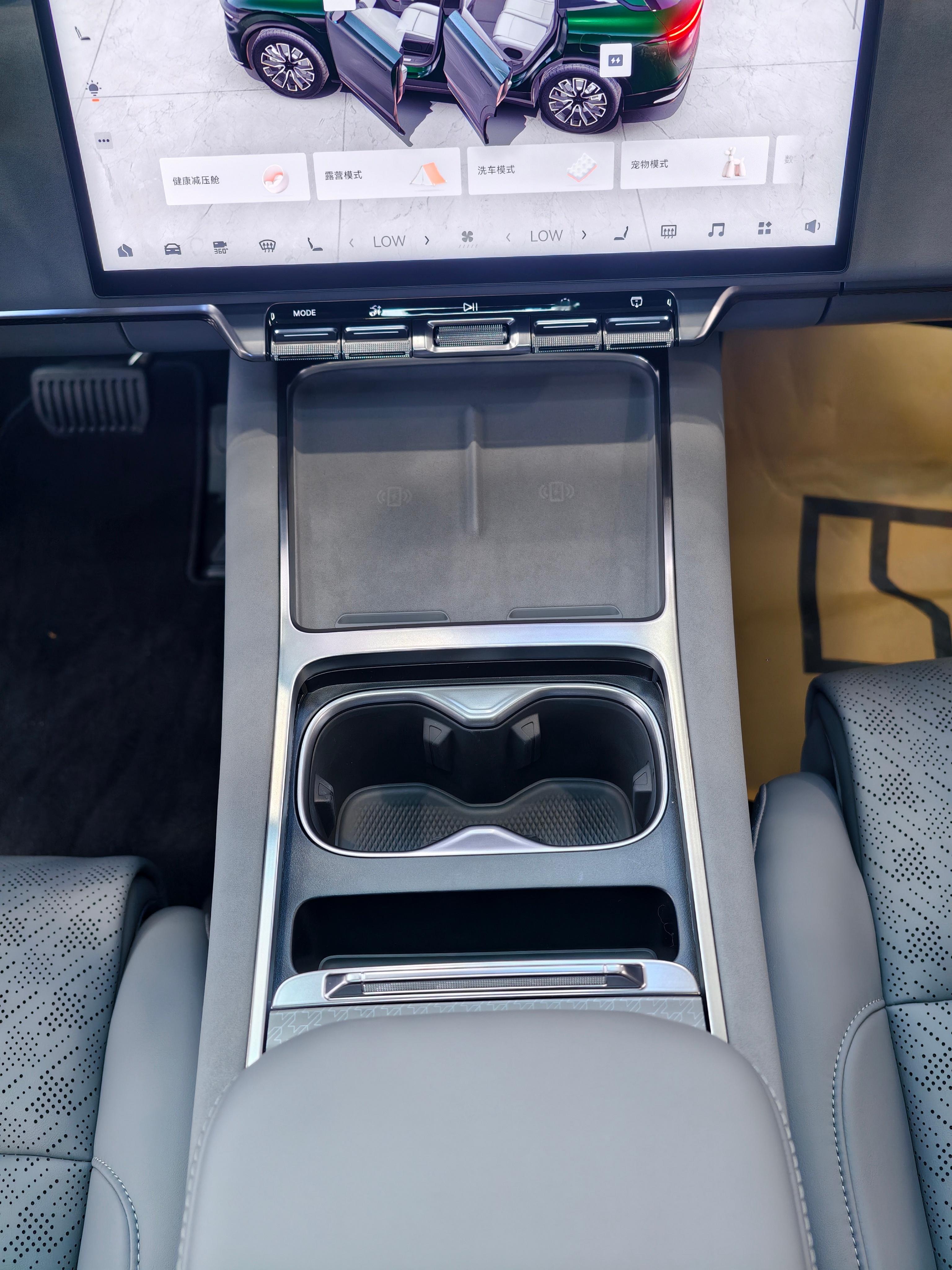 其次扶手箱造型改变,之前我喜欢的那种主副驾驶都可以打开的方式没了,换成了常规的前开口,全车增加到了6杯托,车内顶棚采用了极氪9X同款的麂皮绒包覆,手感细腻顺滑。
