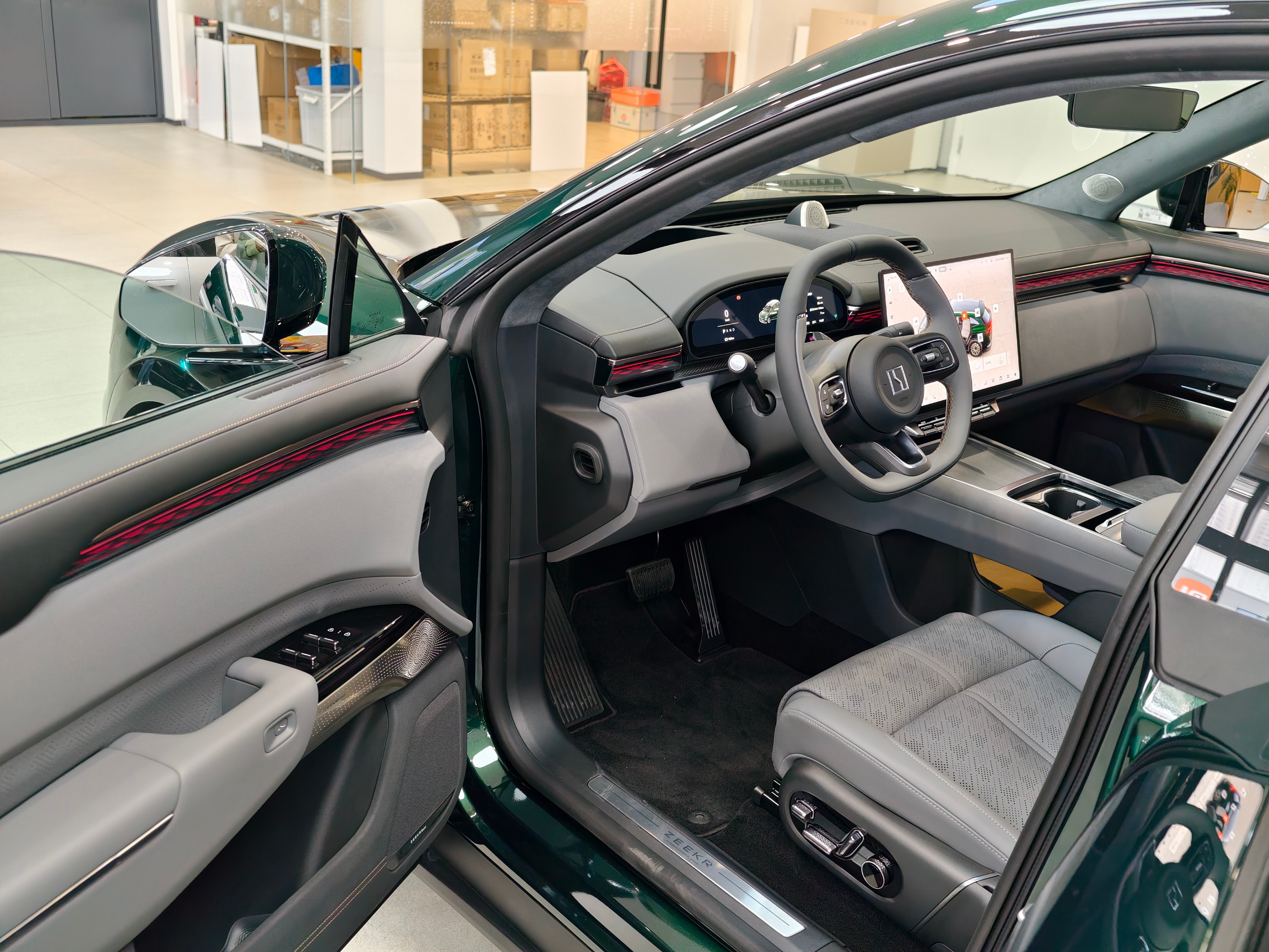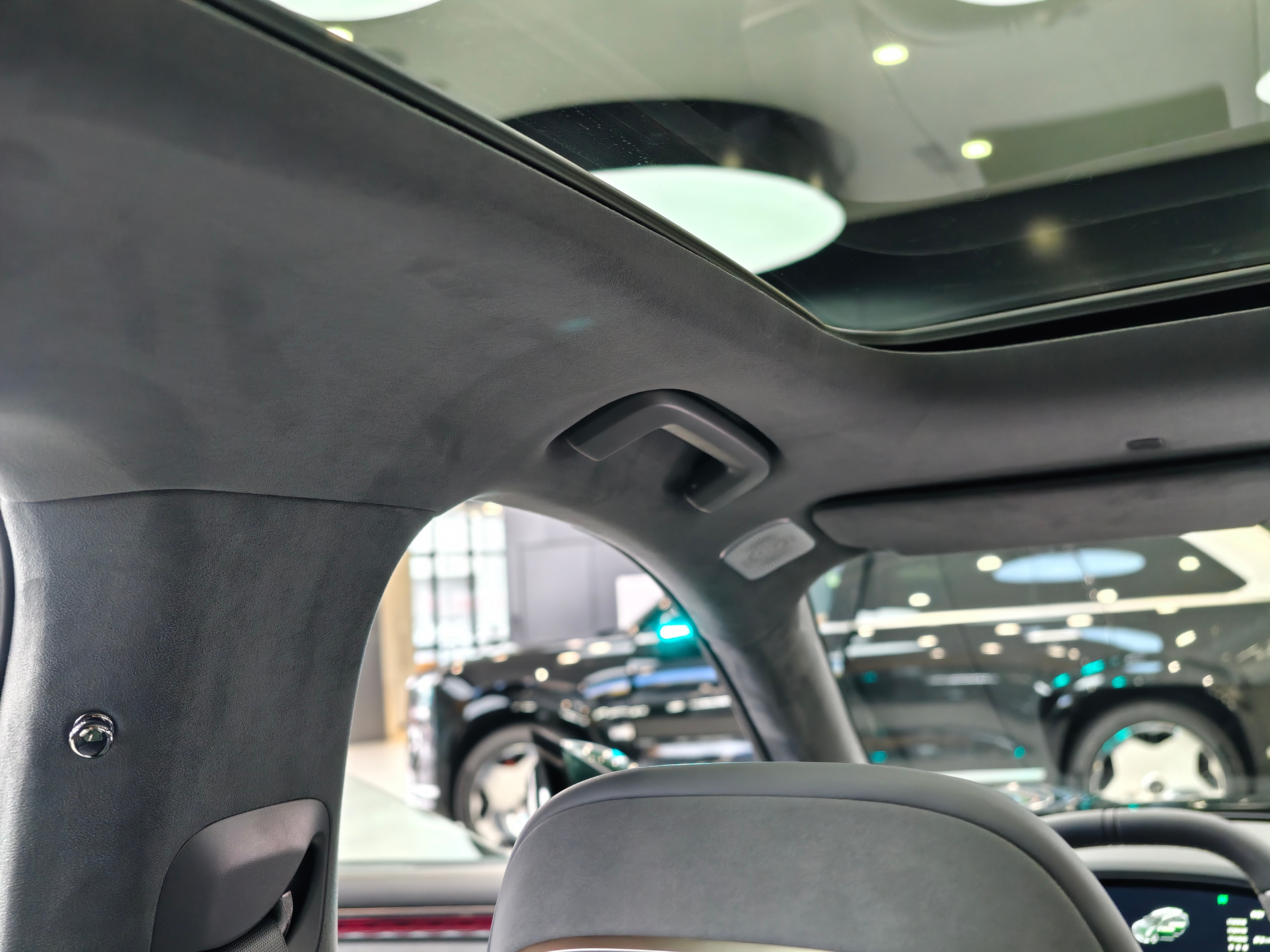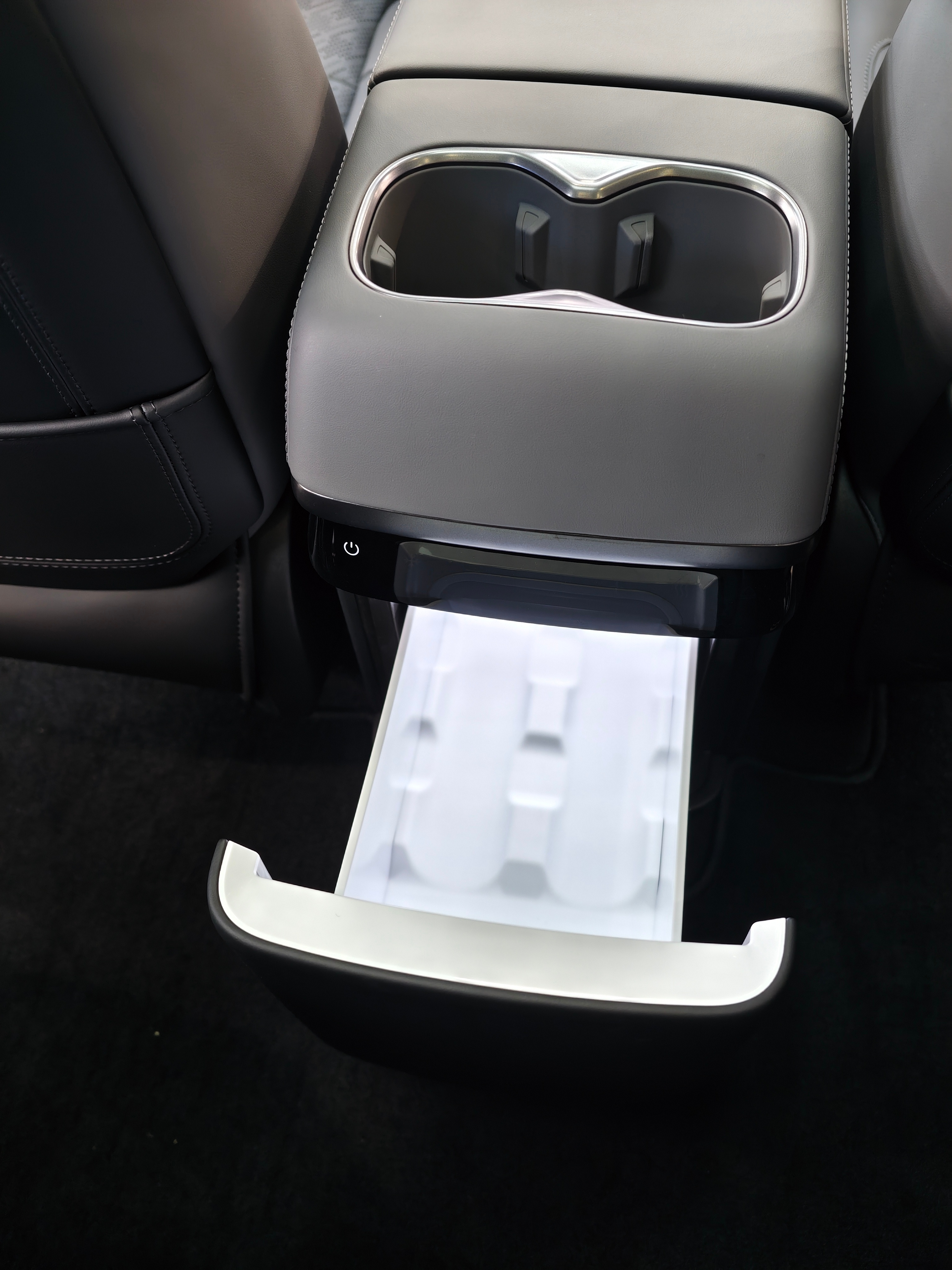 其次扶手箱造型改变,之前我喜欢的那种主副驾驶都可以打开的方式没了,换成了常规的前开口,全车增加到了6杯托,车内顶棚采用了极氪9X同款的麂皮绒包覆,手感细腻顺滑。
