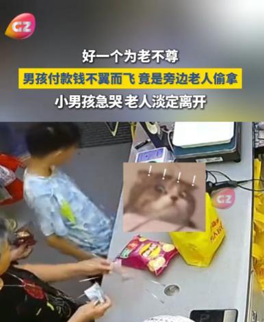 “太缺德了!”10月20日,广东,一小男孩买零食时将钱放在收银台桌面,一旁的老人