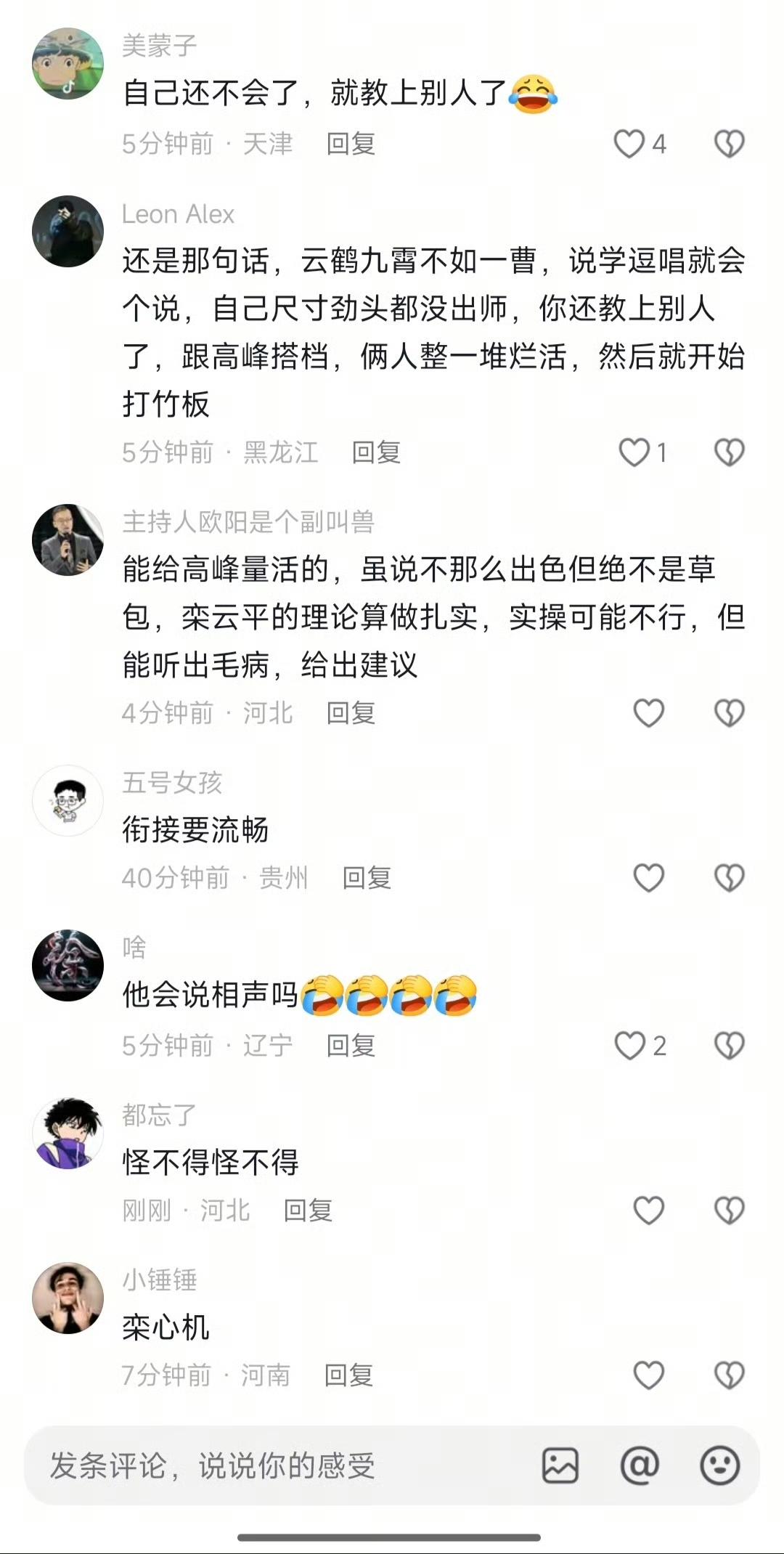 【德云社总队长栾云平教学遭质疑,对此你怎么看?】 近日,德云社抖音账号发布一条相声演员、德云总队长、德云副总、郭德纲爱徒栾云平在九龙出海的教学片段,视频一经发出引来无数的质疑,有人质疑栾云平的教学能力,也有人质疑栾云平自身的能力,可以说是出奇的一致。对此,你是怎么看的呢? 第一,栾云平知名度不高,但是教学能力和相声基础还是可圈可点,教学自己的师弟还是游刃有余的。其实,栾云平是郭德纲第一批云字科弟子,也是郭德纲口口相授的嫡传弟子,相声基本功毋庸置疑。这帮人质疑栾云平的目的并不是针对他的能力,而是针对他这个人,因为栾云平是德云社的副总,在一些事情的处理上无法做到绝对的公平,此次遭遇质疑就是能够说明。 第二,针对栾云平的这些人其实是为了过嘴瘾,外行指导内行的一种典型的操作而已。栾云平的教学是没有问题的,不然也不会被郭德纲封为总队长和爱徒,这样不仅仅是身份的认可,也是能力的认可。这帮人质疑栾云平的教学是因为这帮人想过嘴瘾,刚好碰到一个比较有吐槽点的相声演员而已。