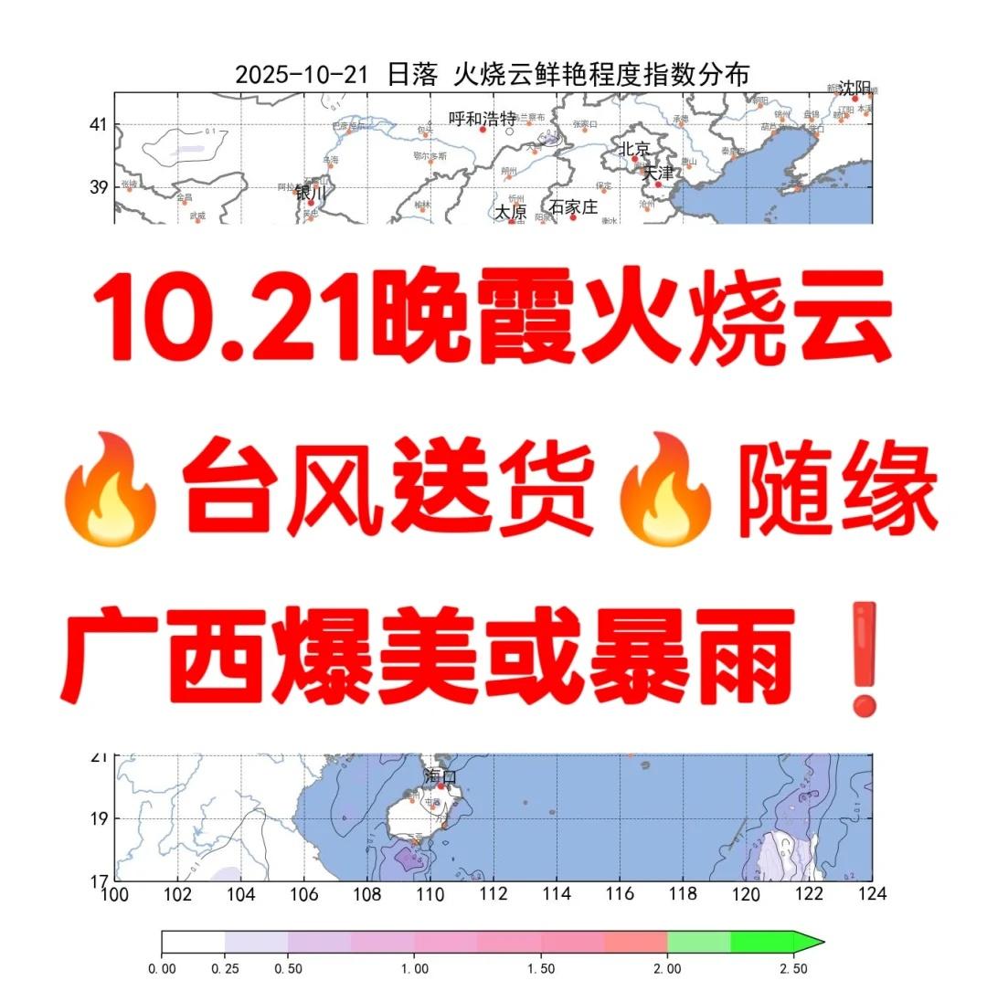 10.21🔥广西晚霞火烧云预测‖台风送货 10.21🔥广西晚霞火烧云概率预测预告‖台风送货爆美❌暴雨❌翻车,🌇随缘拍📷即可✍🏻晚霞火烧云预告 遇见世界晚霞 日落晚霞火烧云 晚霞预告 夕阳无限好红霞尚满天 落日晚霞云 火烧云满天 火烧云 想看看你们那头的火烧云