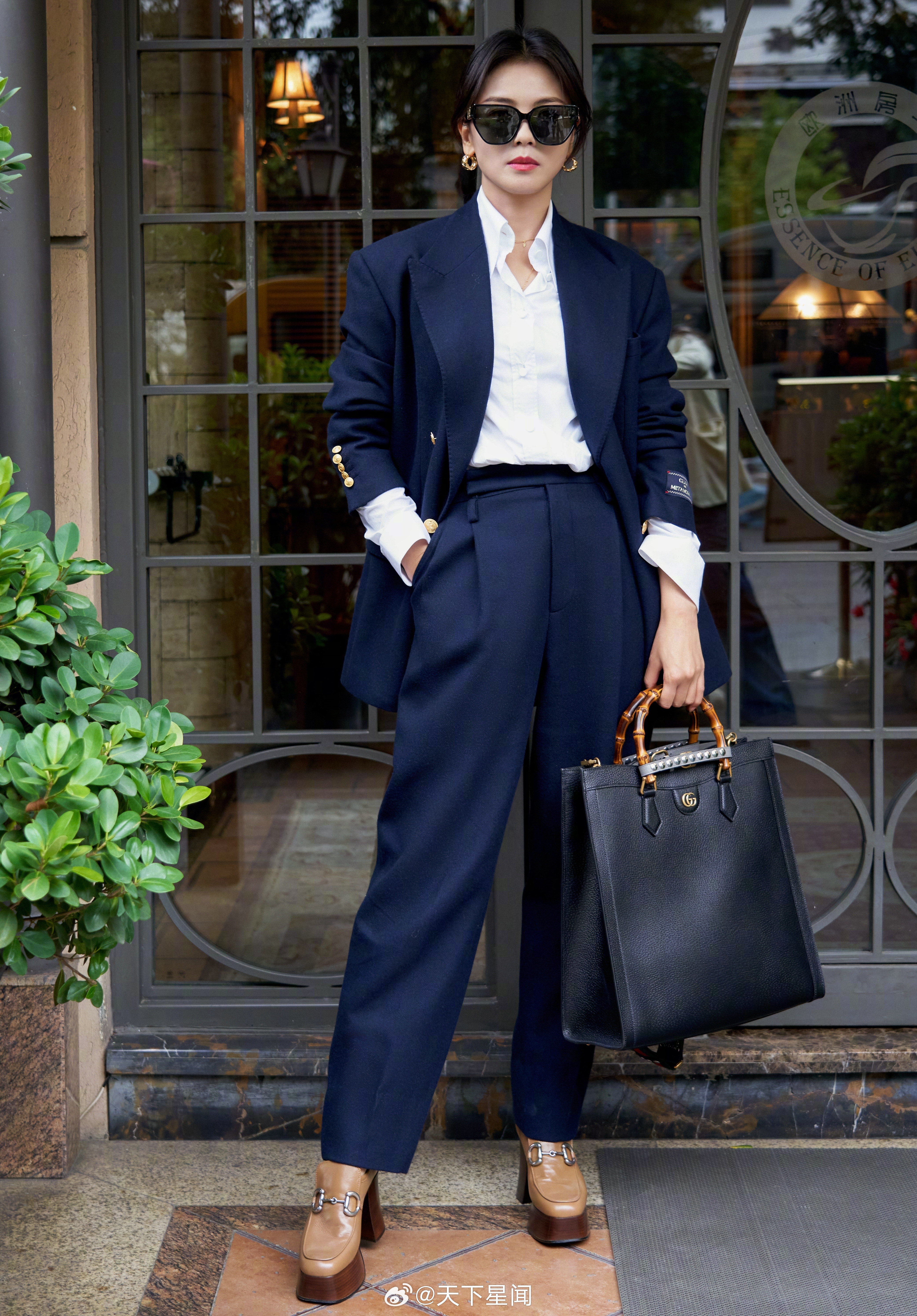 张天爱跟素人合影,胯真的好宽,大宅院似的
