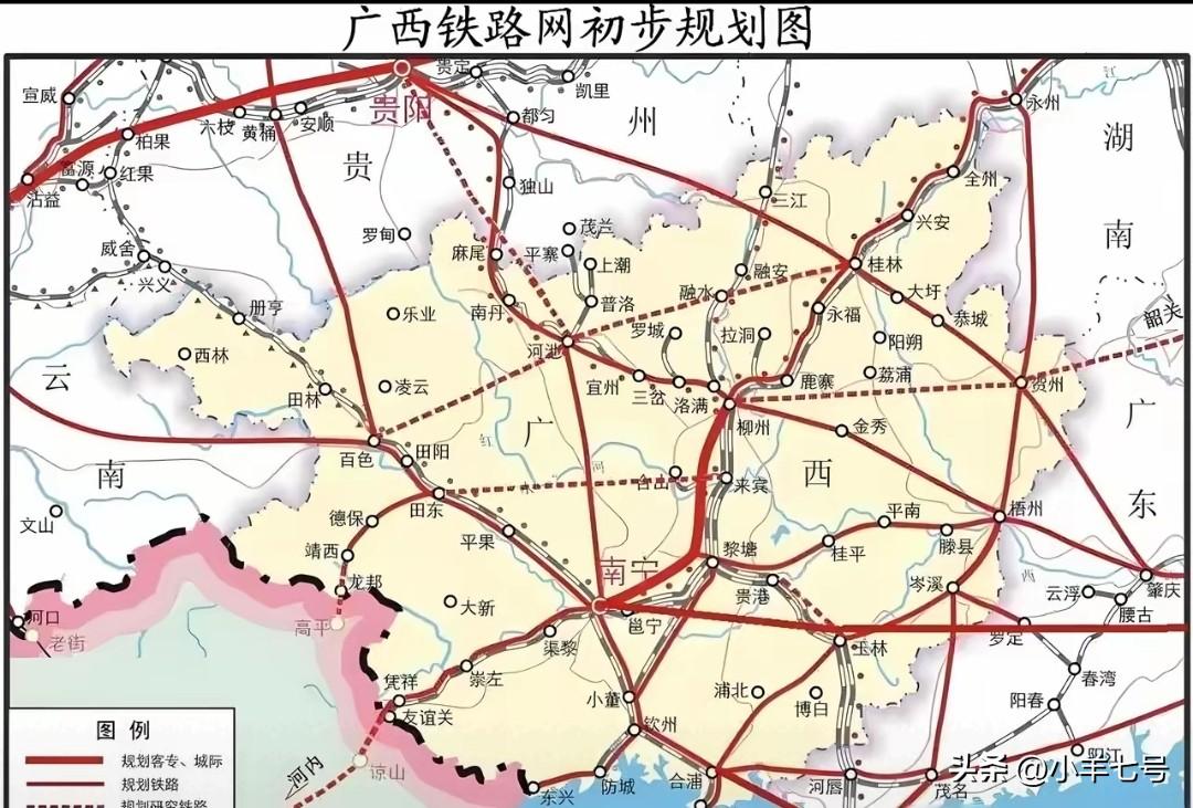 广西的铁路特色是想从一个地方到另一个地方必须绕一个大圈,即先经过南宁,而后到达目的地? 目前的广西的客运枢纽是南宁,由南宁呈四面八方贯通,目前短期内是这样罢了,路网规划建设需要一个阶段一个阶段去完成,在这个过程当中自然需要经历某个阶段带来的不便,但随着路网的完善,自然而然那些不便条件也就随之而解决,所以不要总是盯着当下,有时候也需要往前看,也需要考虑现实条件允许不允许!广西高铁路网 广西铁路布局 广西铁路规划 广西城际铁路