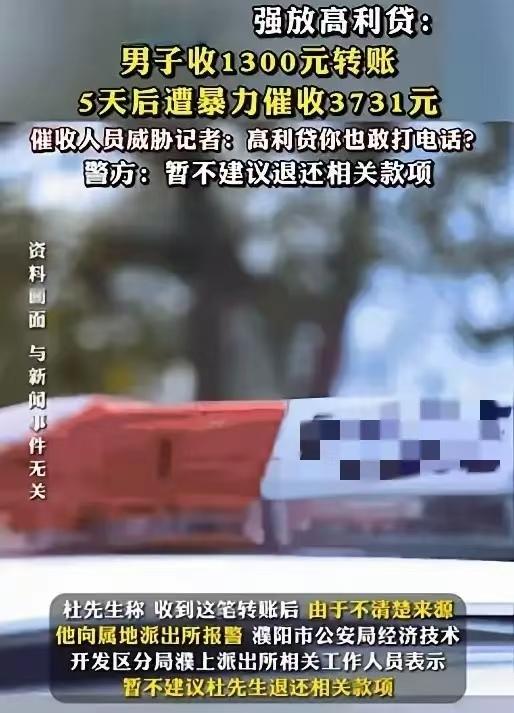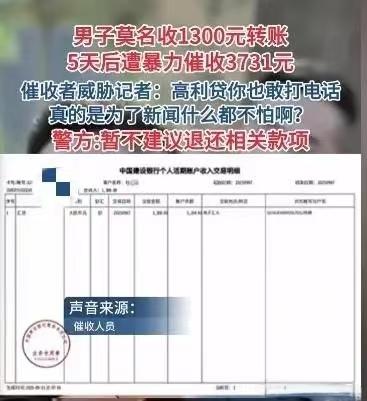 男子莫名收到1300元转账, 5天后遭暴力催收,高利贷套路暗藏玄机。 河南濮阳,杜先生银行卡账户莫名收到1300元入账,而他不认识转账人,杜先生觉得不明来历的钱决不能贪,随后报了警。 没等警方查清这笔钱的来历,杜先生连续接到催收电话,对方称他在某借贷APP上借了1300元钱,现在他需要还2430元,男子马上拒绝了。 第二天,对方又打来电话,直接让他还3731元,还称不还钱,连亲朋好友也别想消停! 那天,杜先生像往常一样,查看自己的建行卡余额,发现账户里,突然多了一笔1300元的转账。 汇款人是个陌生人,他绞尽脑汁反复搜索,确定自己从未与这个人有过任何交集。 杜先生平时就处事谨慎,天上掉馅饼的事决不相信,这种来路不明的钱财不能收。 杜先生立即联系了银行客服,工作人员听完他的描述,表示转账很可疑,极有可能是新型诈骗手段,建议他尽快报警处理。 杜先生没有丝毫耽搁,当即向当地警方报案,并详细说明了情况。 完成这些步骤后,他以为事情会暂时告一段落,只需等待警方的调查结果即可。 然而令他意想不到的是,这才只是麻烦的开始。 4天后,杜先生的手机,开始被一连串陌生号码轮番轰炸。 电话那头的人,语气凶狠,自称是某借贷APP的工作人员。 声称杜先生4天前,在他们的平台上借款1300元,现在已到还款期限。 杜先生顿时明白,原来那笔不明来路的1300元,是这么回事。 可他连这个APP的名字都从未听说过,更别说主动申请借款了。 对方完全不听杜先生的解释,强硬地表示,当天还款金额为2430元,并威胁说如果拖到第二天,还款数额还会继续增加。 杜先生心里一沉,短短4天时间,利息就高达1130元,平均每天要多还280多元,这分明是高利贷的套路。 他坚决不承认这笔债务,并向对方说明,自己已经报警。 催收人员非但没有收敛,反而变本加厉,还满口脏话,要求杜先生添加联系方式,被杜先生果断拒绝。 更夸张的是,转天催收电话又打来了,这次的还款金额直接涨到了3731元。 短短一天时间,又多了1300多块的利息,还威胁说要是不还,就别想过安稳日子,亲朋好友也跟着遭殃。 杜先生既气愤又困惑,怎么也想不通,自己怎么会卷入这样的纠纷? 他仔细回忆,最近是否误点了什么非法链接,或者不小心泄露了个人信息,但始终理不出头绪。 自从那天开始,杜先生正常的生活,被这些无休止的催收电话彻底打乱,简直压力山大。 杜先生一想,这么下去也不是个事,他决定寻求媒体帮助,希望通过曝光此事来解决问题。 记者介入调查后,拨通了杜先生提供的催收电话。 对方坚持声称,杜先生是通过短信广告链接,自主完成人脸识别并提交了借款申请,借款期限为五天。 但当记者要求对方出示杜先生借款的相关证据时,对方却以保护客户隐私为由拒绝提供任何材料。 在记者的连续追问下,对方逐渐失去耐心,竟直接承认这就是高利贷,还威胁记者不要多管闲事。 最后撂下狠话:我们有专门的催收人员,这是肯定的!想不还钱,门都没有! 记者经过进一步调查,发现所谓的借贷平台,根本查不到任何正规的公司信息和工商注册记录。 催收使用的电话号码,也非正规企业的官方号码。这表明,该平台极可能是非法放贷机构。 而杜先生账户上那1300元,至今仍在卡内,他面临着两难抉择:如果还款,相当于承认了这笔莫须有的债务。 而且利滚利的金额,已经高得离谱;如果不还,又难以承受持续不断的骚扰威胁。 目前,警方已正式介入此案的调查。 那么,在法律的角度,该如何认定此事呢? 一、借贷关系的法律效力 根据《民法典》第143条,有效的民事法律行为需满足意思表示真实。 杜先生未主动申请借款,对方强制转账形成的借贷关系,缺乏真实意思表示,且未提供借款合同、人脸识别等证据,该借贷关系应属无效。 涉案借款4天利息达1130元,年化利率远超当时一年期LPR的四倍。 根据《关于审理民间借贷案件适用法律若干问题的规定》第25条,超出部分不受法律保护。 二、催收行为的违法性 催收方通过电话轰炸、威胁辱骂、骚扰亲友等手段讨债。 违反了《治安管理处罚法》第42条,威胁、侮辱他人,可处拘留或罚款。 若催收方进一步实施跟踪、滋扰、可能构成寻衅滋事罪,或催收非法债务罪,可处三年以下有期徒刑。 三、杜先生的权利救济途径 杜先生应保留银行转账记录、通话录音、短信截图等关键证据。 报警后提供催收号码、APP信息等线索,协助调查非法放贷链条。 四、法律建议 该平台没有注册记录,属于未经监管部门批准从事放贷,其行为可能构成非法放贷。 综上,杜先生的遭遇,属于典型的“黑网贷”套路,需通过刑事报案、民事维权、行政投诉多途径反击。 这起案例也提醒大家:对手机上弹出的不明链接、借款广告千万别随便点。 对此,你怎么看?
