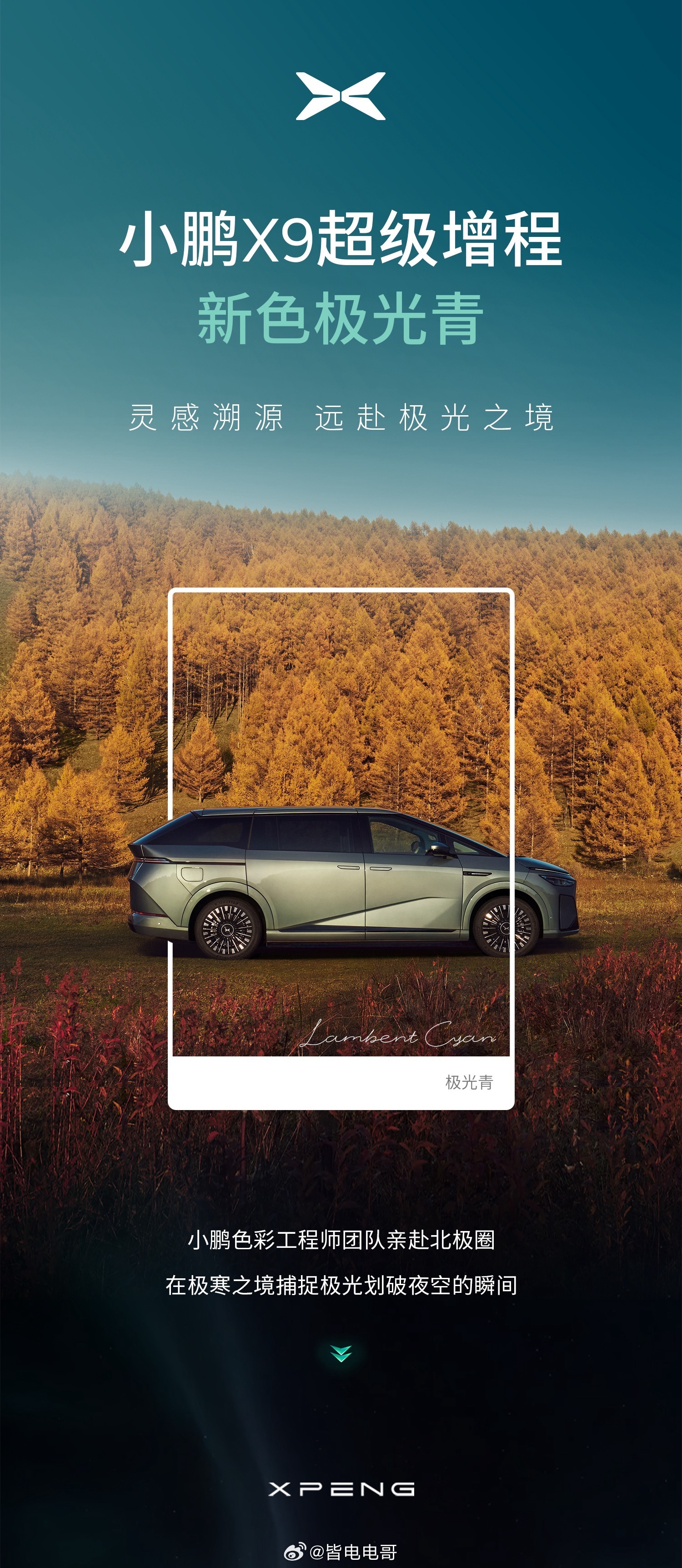 小鹏X9首发新色极光青1602公里续航的小鹏X9超级增程来了大v聊车