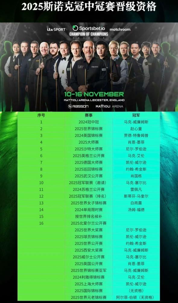 冠中冠的名额已确定14席,剩下2席要等北爱尔兰赛冠军。 但是元老世锦赛冠军伯顿不乐意了,他说自己有“合同上的参赛权”。 世界老年斯诺克巡回赛主席杰森·弗朗西斯公开质疑,称伯登“在合同上有参赛权”,并已与WPBSA(世界职业比利和斯诺克协会)沟通。伯登在社交媒体暗示将发表声明,但世台联作为独立主办方拥有最终决定权。