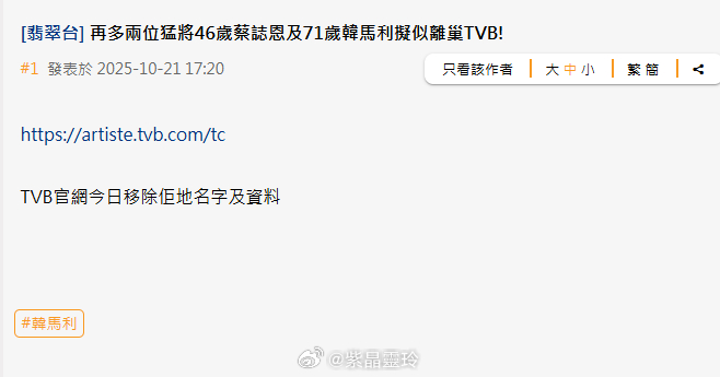 【明報即時】71歲韓馬利疑似離巢無綫 藝人資料遭TVB官網刪除