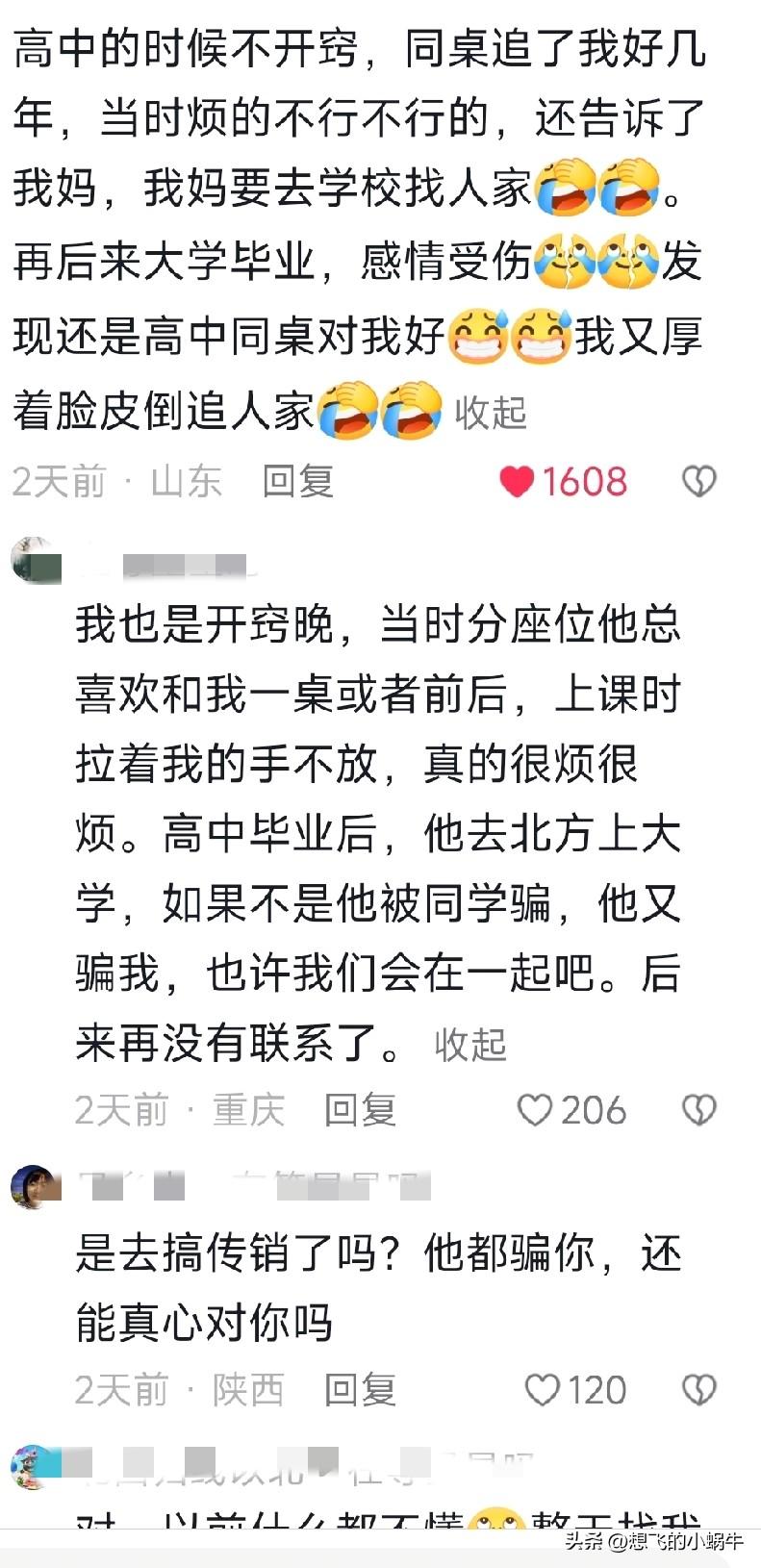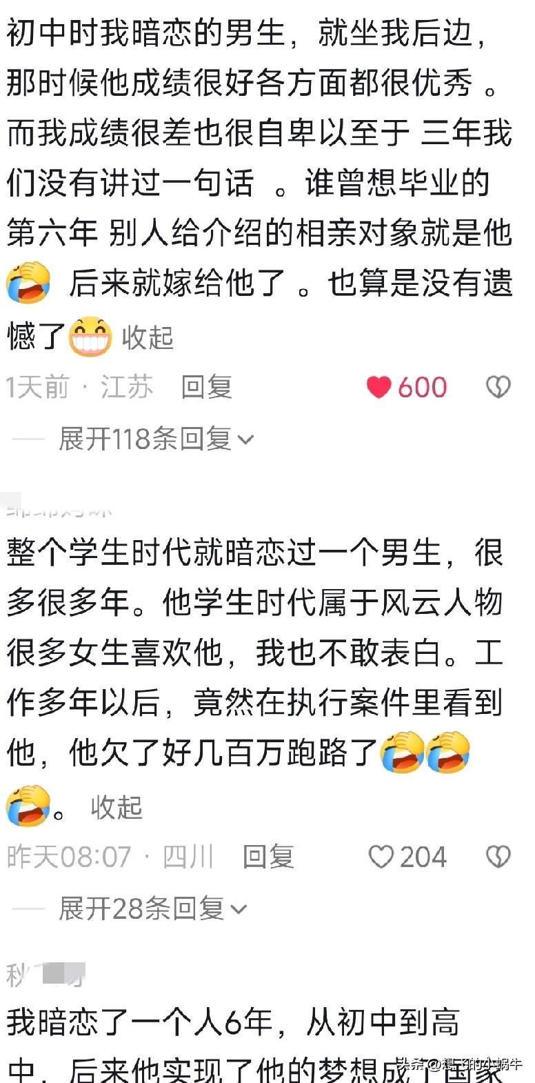 我居然掉进了大家的暗恋回忆漩涡[捂脸] ​可惜我也开窍太晚,而且呢,对于暗恋的人后来了解他的真面目后非常厌恶,心想,当初是眼瞎心盲啊,怎么会喜欢那种人[捂脸] 然后,真理解不了别人暗恋多少年都释怀不了的心中的那份甜🦆!!!他们真是太痴情了![奸笑][奸笑][奸笑][奸笑]