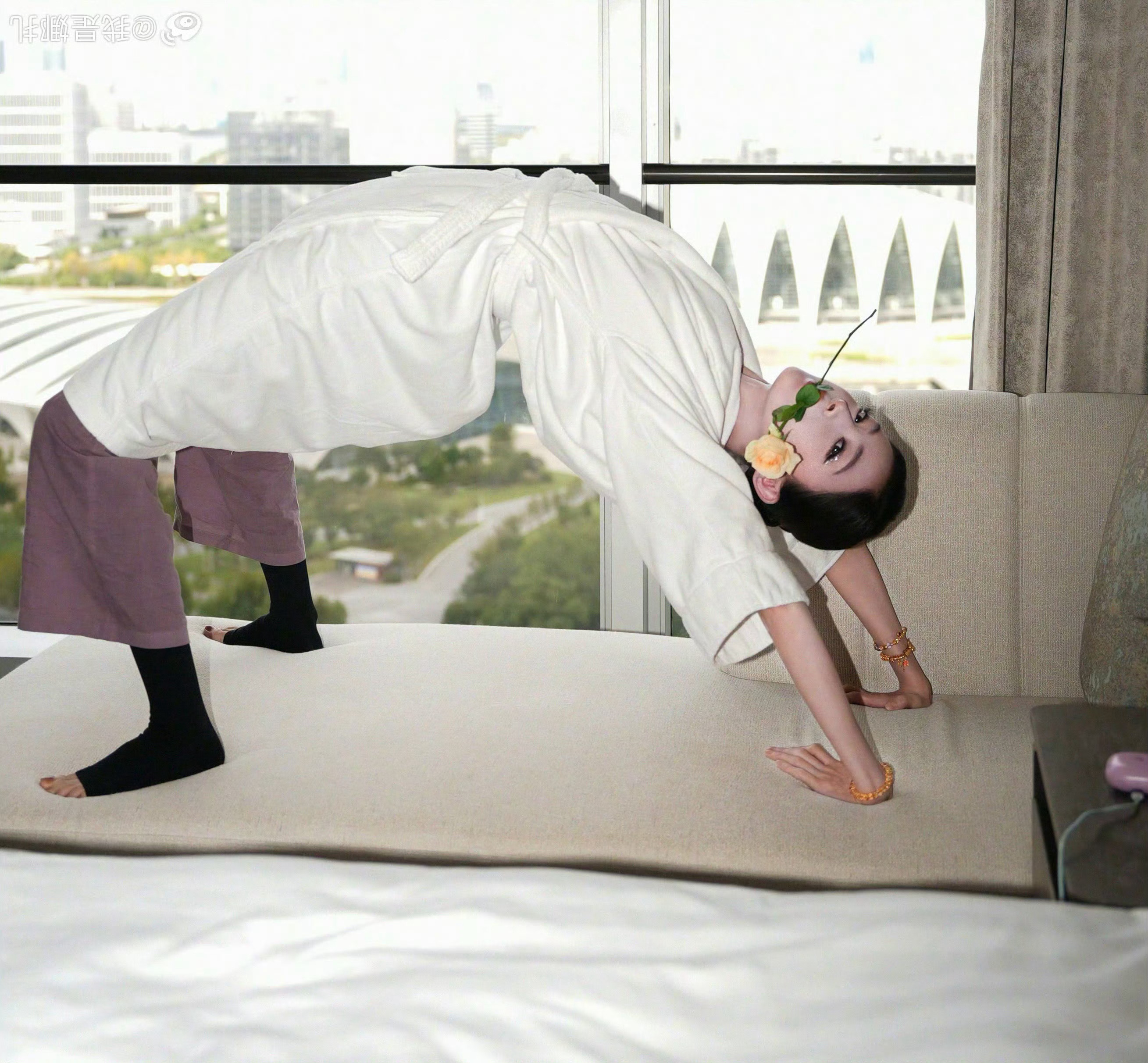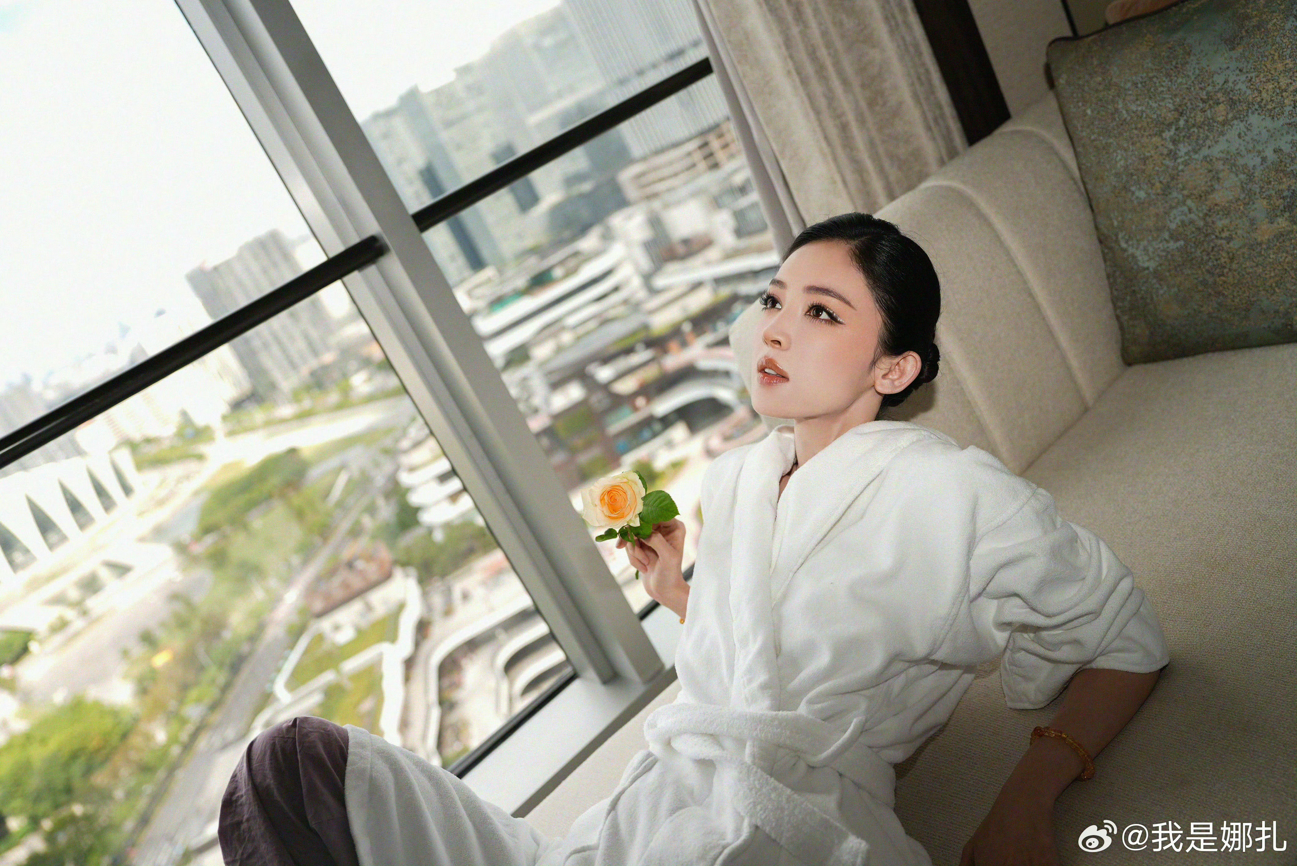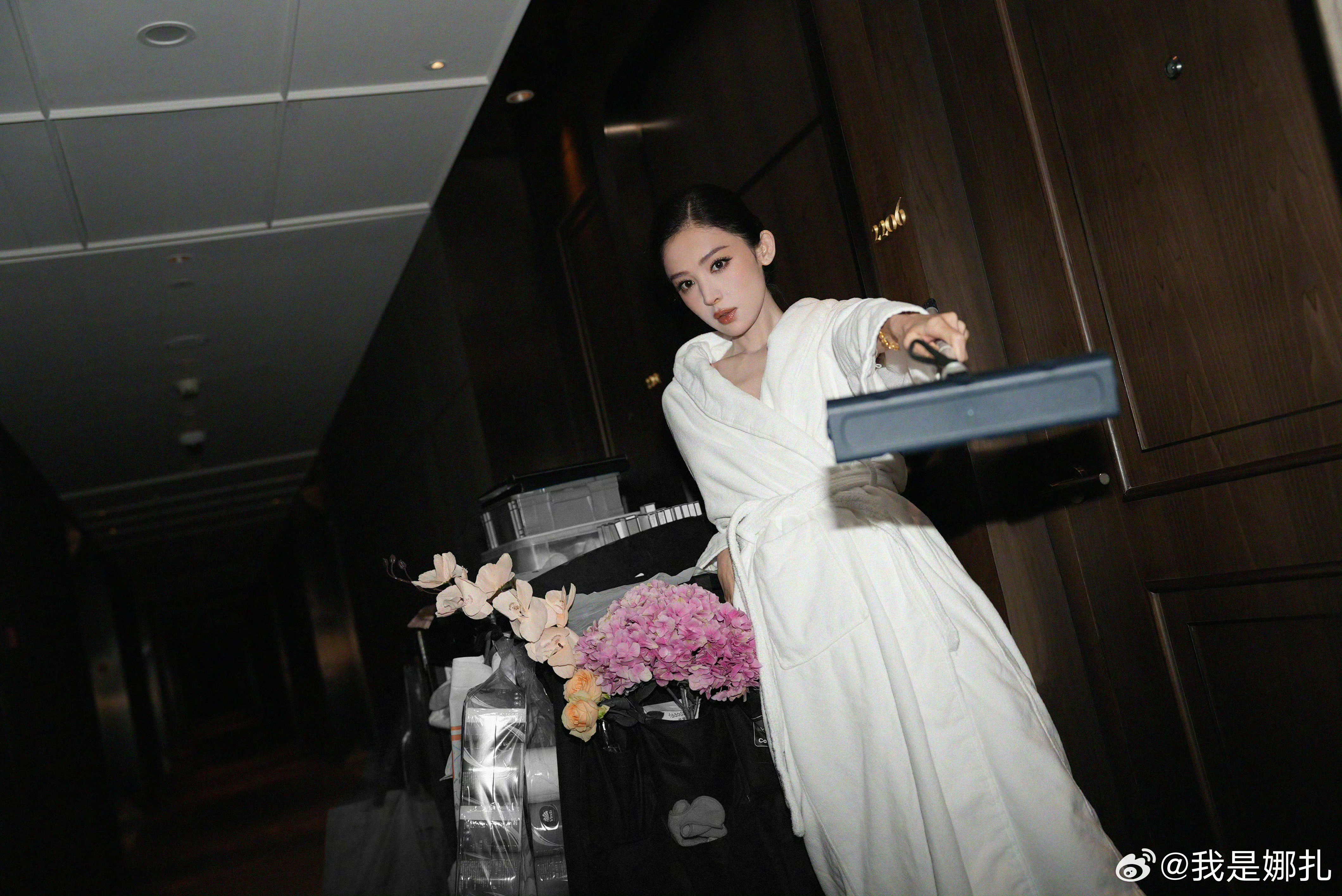 娜扎 x 红毯前酒店浴袍下腰[么么哒]娜扎红毯之前突然下个腰