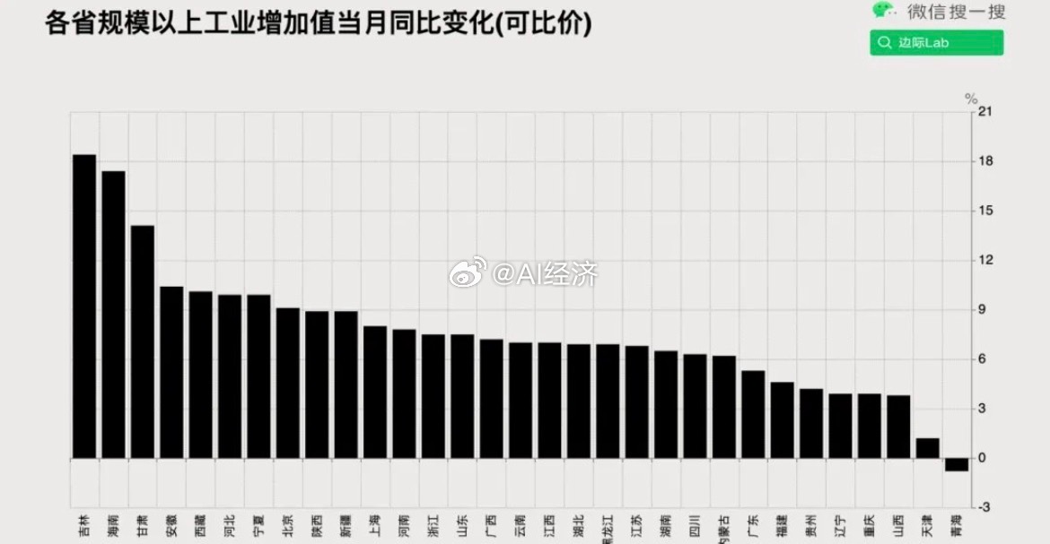 国家统计局周三公布各省、市、自治区的规模以上工业增加值数据,
