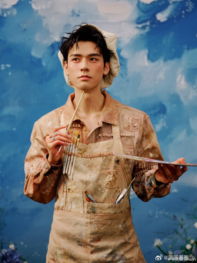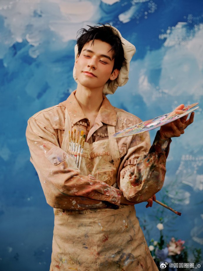 龚俊来VOGUE把花画成画鲜花簇下挥笔,这画面好治愈✨[心]小画家的灵动和自然感