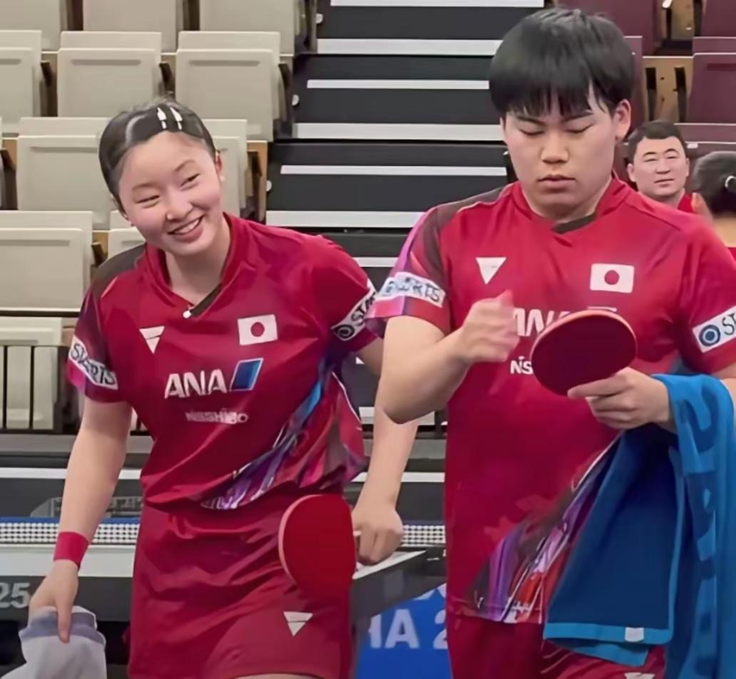 昔日红色比赛服,今朝蓝色比赛服。 但鞋子是红色的! 今天在WTT伦敦球星挑战赛,混双1/8决赛。 日本松岛辉空/张本美和3:2胜法国科顿/卢茨。 比赛时,这对日本混双身着蓝色比赛服! 但双方鞋子都是红色的! 作者友友选的图片,红色比赛服,喜庆! 看把张本美和乐的!