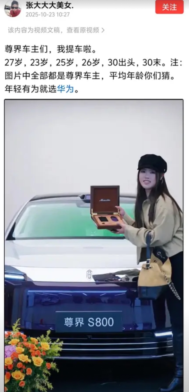 我发现余承东现在真的是越来越低调。今天,深圳鸿蒙智行用户中心给一次买入30台尊界的大客户“张大大大美女”交付,余总忙不过来不亲自去交车可以理解,但鸿蒙智行愣是一个字都不提,根本连宣传都没有宣传,还是车主“张大大大美女”和陪同提车的一群尊界车主发视频庆祝,才让大家知道之前所说的有人一次购买30台尊界是真的。 也难怪余承东低调,现在尊界的产能远远跟不上订单的节奏,很多下订尊界的车主天天都在等排产,等提车,如果余总高调给“张大大大美女”交付,怕是更引起其他尊界车主的提车焦虑啊。毕竟,尊界的很多车主都是非富即贵,有的甚至是行业的大佬,他们都很看重自己是否得到足够的重视。 说实在,“张大大大美女”一次买入30台尊界我不惊讶,余承东不出席交付仪式我也不惊讶,我惊讶的是,陪同“张大大大美女”去提车的,竟然是一群平均年龄只有20多岁的尊界车主,他们甚至在交付现场自豪地喊出“年轻有为,就选华为!”这让我深深地感受到了这场交付背后的“车主凝聚力”。 没有官方刻意组织,深圳及周边的一群尊界车主主动汇聚,开着他们自己的尊界S800,浩浩荡荡前往鸿蒙智行用户中心,见证朋友“张大大大美女”的批量提车,用礼花与口号为同好捧场。这恰恰说明鸿蒙智行早已超越“汽车销售”的范畴,成为一个连接年轻、共识、热爱的社群。当越来越多20多岁的年轻人愿意为尊界驻足,当车主们自发形成“以国产为荣”的圈层文化,此时,他们所带来的宣传效果,胜过鸿蒙智行自己的任何宣传,这才是车标豪华的洋品牌所害怕的。
