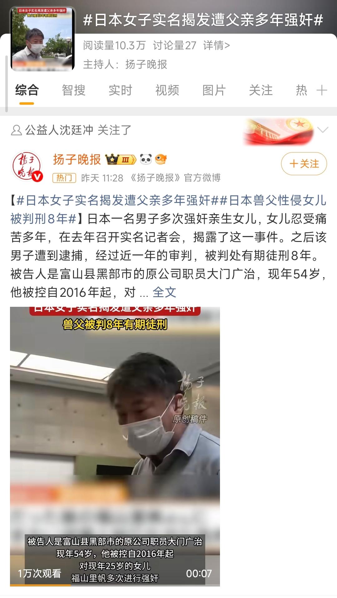 不亏是日本,怪不得日本那么多H片演这种情景的片段,原来艺术来源于生活。 一个当爹的,居然强奸自己的亲生女儿,而且从人家上初二一直祸害到高二! 这哪是爹啊,简直是披着人皮的禽兽! 这让我想起了日本某些风俗:生活中常有父女同浴,女儿出嫁前还要赤身裸体为父亲洗澡 包括日本皇室为了保证血统纯正,也内部通婚 这乱伦思想由来已久,这妥妥的性变态之都啊。 日本女子实名揭发遭父亲多年强奸 亲生父亲强奸女儿 日本性犯罪