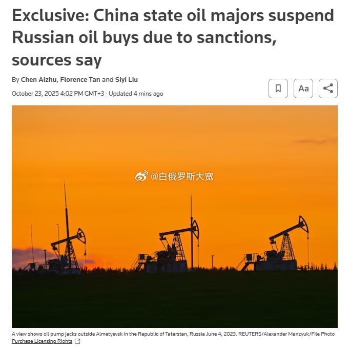 10月23日,路透社报道,在美国对莫斯科最大的两家石油公司俄罗斯石油公司(Rosneft)和卢克石油公司(Lukoil)实施制裁后,中国国有石油巨头已暂停购买海运俄罗斯石油。由于对制裁的担忧,中石化、中海油和振华石油至少在短期内将避免交易海运俄罗斯石油。彭博社估算,俄罗斯这两大石油生产商,合计占据俄罗斯原油出口总量的近一半。而石油和天然气行业的税收收入,约占俄罗斯联邦预算的四分之一。实施制裁后,俄罗斯对印度主要炼油厂的石油供应预计将降至近乎为零。美国的新制裁对俄罗斯石油出口构成威胁,但中国——俄罗斯打折原油的最大买家之一——已经建立了大量储备来缓冲中断。今年前9个月,中国原油进口总量的约17%来自俄罗斯,其中大部分是库存。由于中国没有公布官方的石油储备数据,分析师通过比较进口量、国内产量和加工量估计,每天储存了大约 100 万桶石油。摩根大通全球大宗商品策略主管娜塔莎·卡内瓦(Natasha Kaneva)表示,包括水上油在内的中国石油库存今年迄今已上涨1.6亿桶,创下自2020年以来的最大涨幅坚持把着力点放在实体经济上
