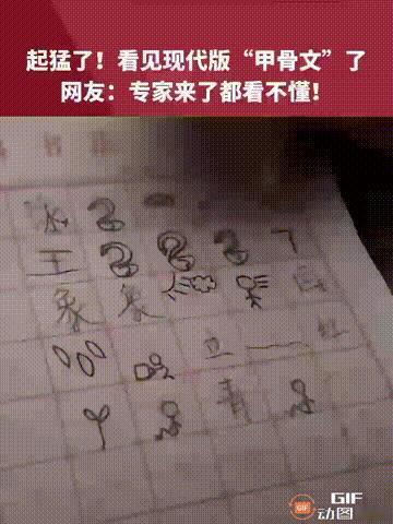 福建一个萌娃在家里写古诗,写完后给妈妈一看,妈妈直接就懵了,完全看不懂孩子写的是哪首古诗,只见作业本上写的根本就不是汉字,而是孩子自创的“象形字”,之后萌娃给妈妈一边朗读一边解释,妈妈才明白原来写的是《咏鹅》,网友看完这段视频,都觉得这个萌娃写的字,就算是请专家来看了,估计也要摇头,因为实在是不好辨认,就像是甲骨文一样深奥难懂,不过我倒觉得这个萌娃十分聪明可爱,他用象形字的方式写下了整首诗,有几个字写得还是很贴切的,认真看地话,还是可以明白其中的深意,这至少说明了他是在用心写字,同时也动了脑筋,相信凭借着这股认真的劲头,也是未来可期了。大家怎么看呢?