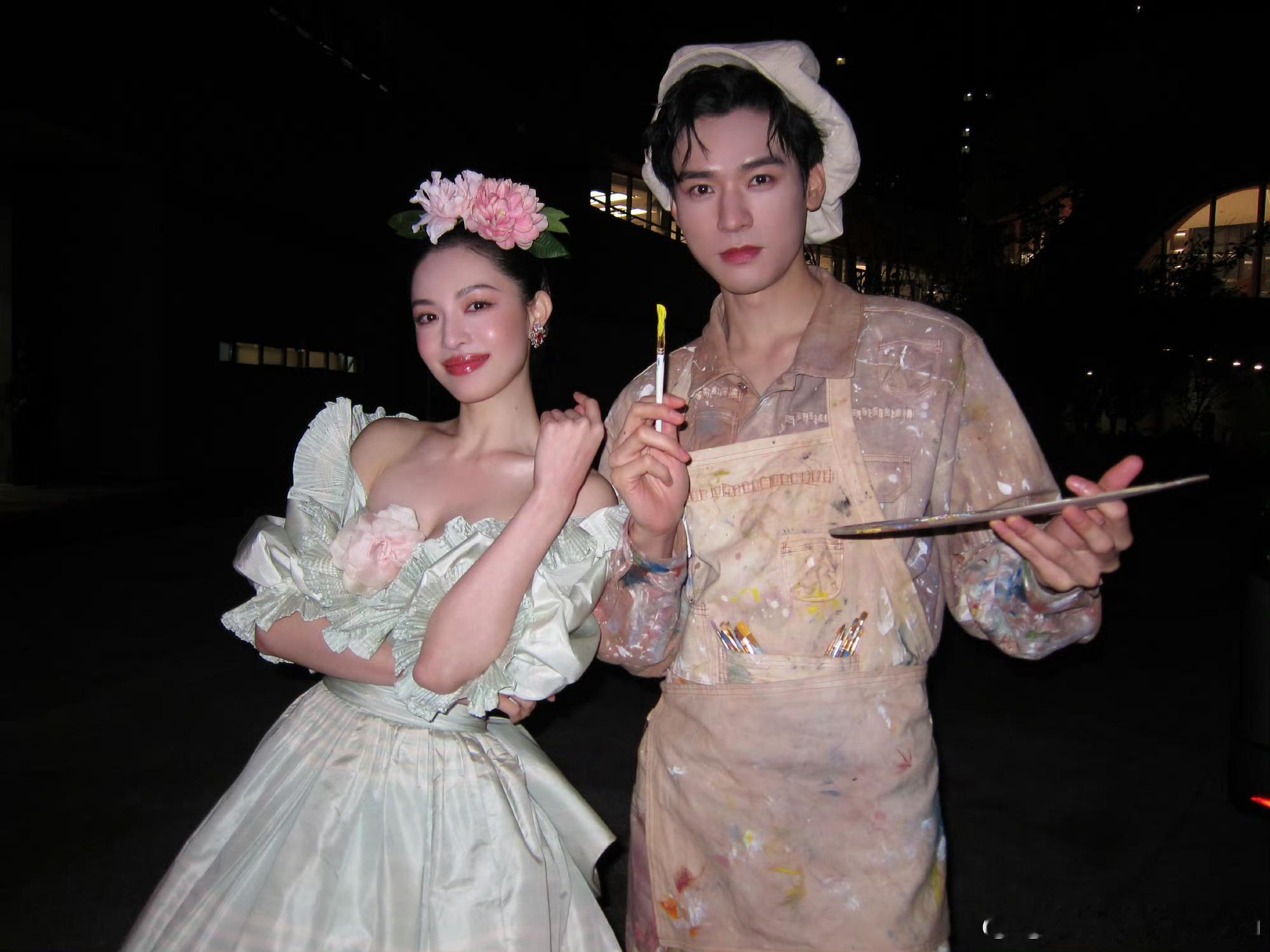 我天,龚俊和钟楚曦这一张好有故事感!画家和他笔下走出来的画里的人物[求关注] vogue盛典红毯