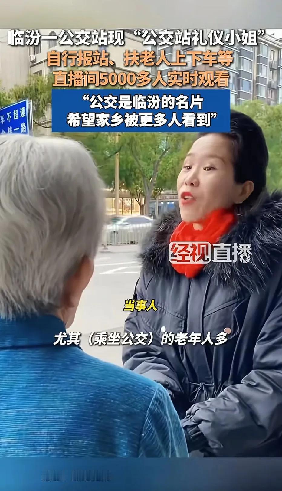 经常见空姐,但是是第一次见“公交车主理人”,[捂脸]笑喷了,对不起,原谅我。这位女子自发到公交车站为乘客服务,并且自行报站,还扶着老人上下车,是挺到位的[捂脸]隐也挺大。 我看到有一个网友开玩笑说:上次我只是路过,然后被她强行扶上了公交车。。 哈哈,不过玩归玩,闹归闹,其实,只要不影响他人和交通的情况下,无伤大雅,就这名女子帮老人上下车,这一点就很不错,点赞。[赞]对比,大家怎么看?