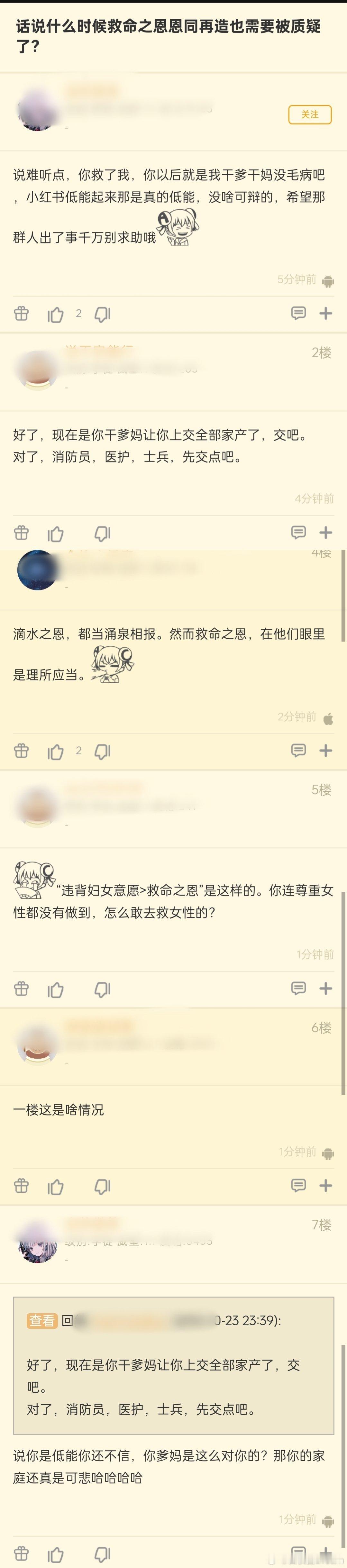 “什么时候救命之恩恩同再造也需要被质疑了?”