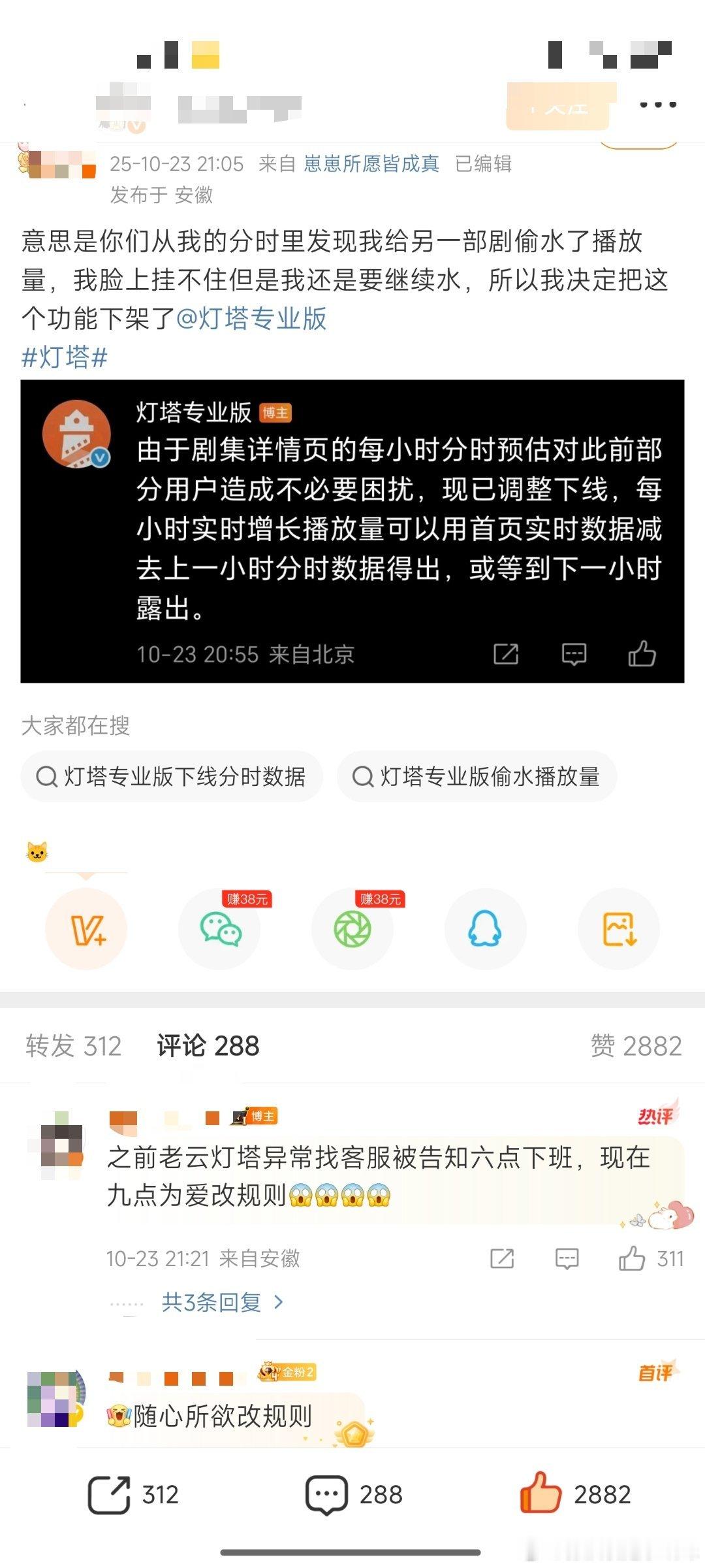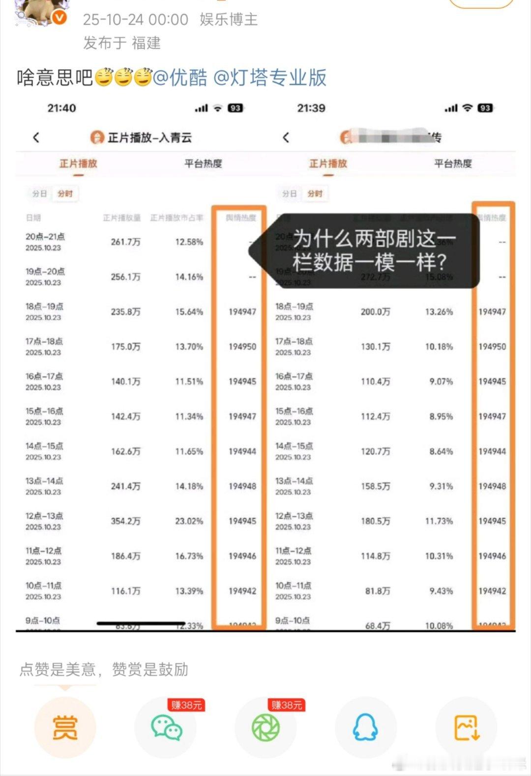 侯明昊和卢昱晓粉丝发现同样是拉新翻倍,入青云却没有出现灯塔分时暴涨,灯塔数据跟其他平台数据相比出现异常,因此向灯塔维权
